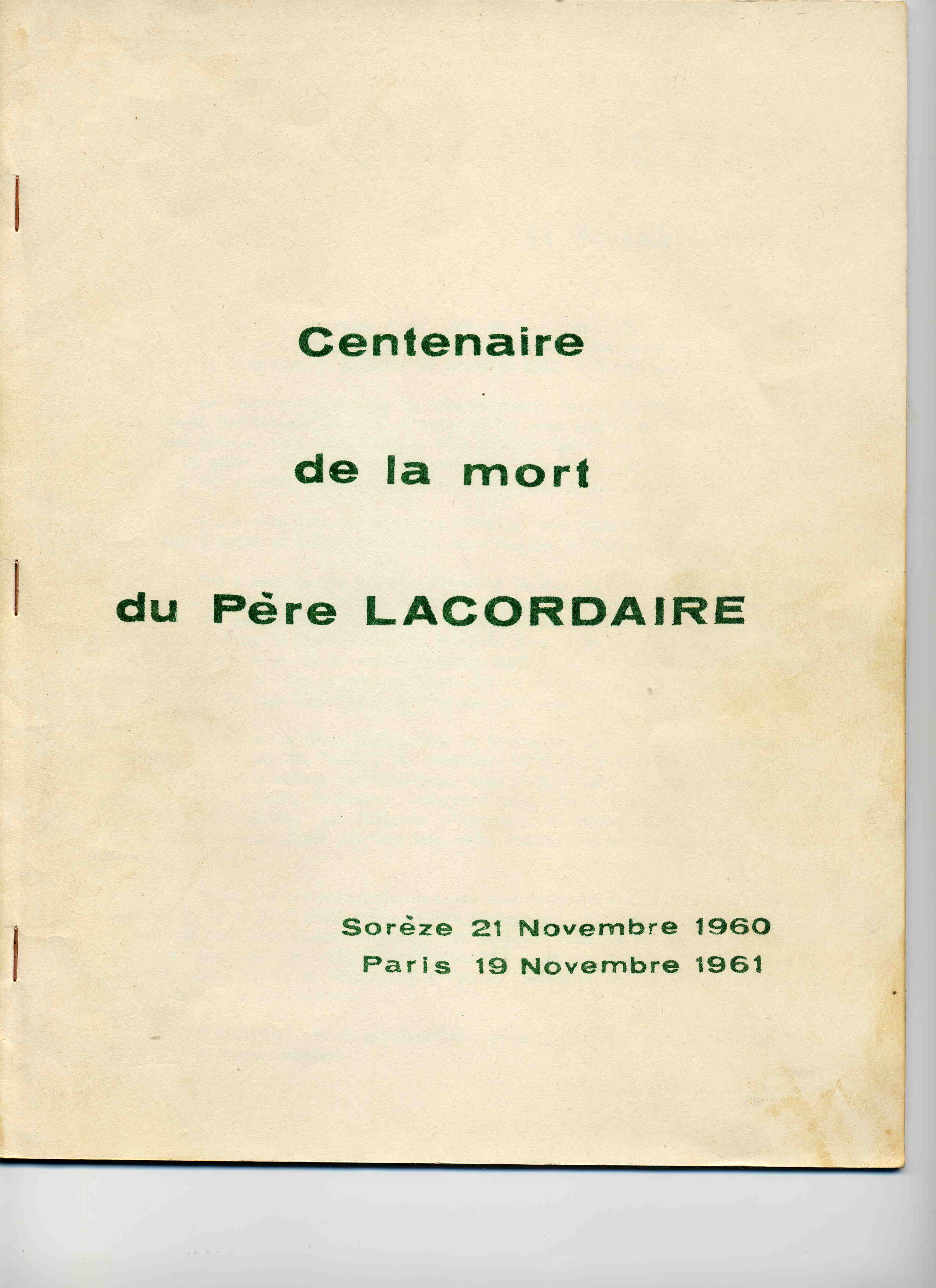 Compte-rendu de la journée du 21 novembre 1960 célébrant à Sorèze le centenaire de la mort du Père Lacordaire