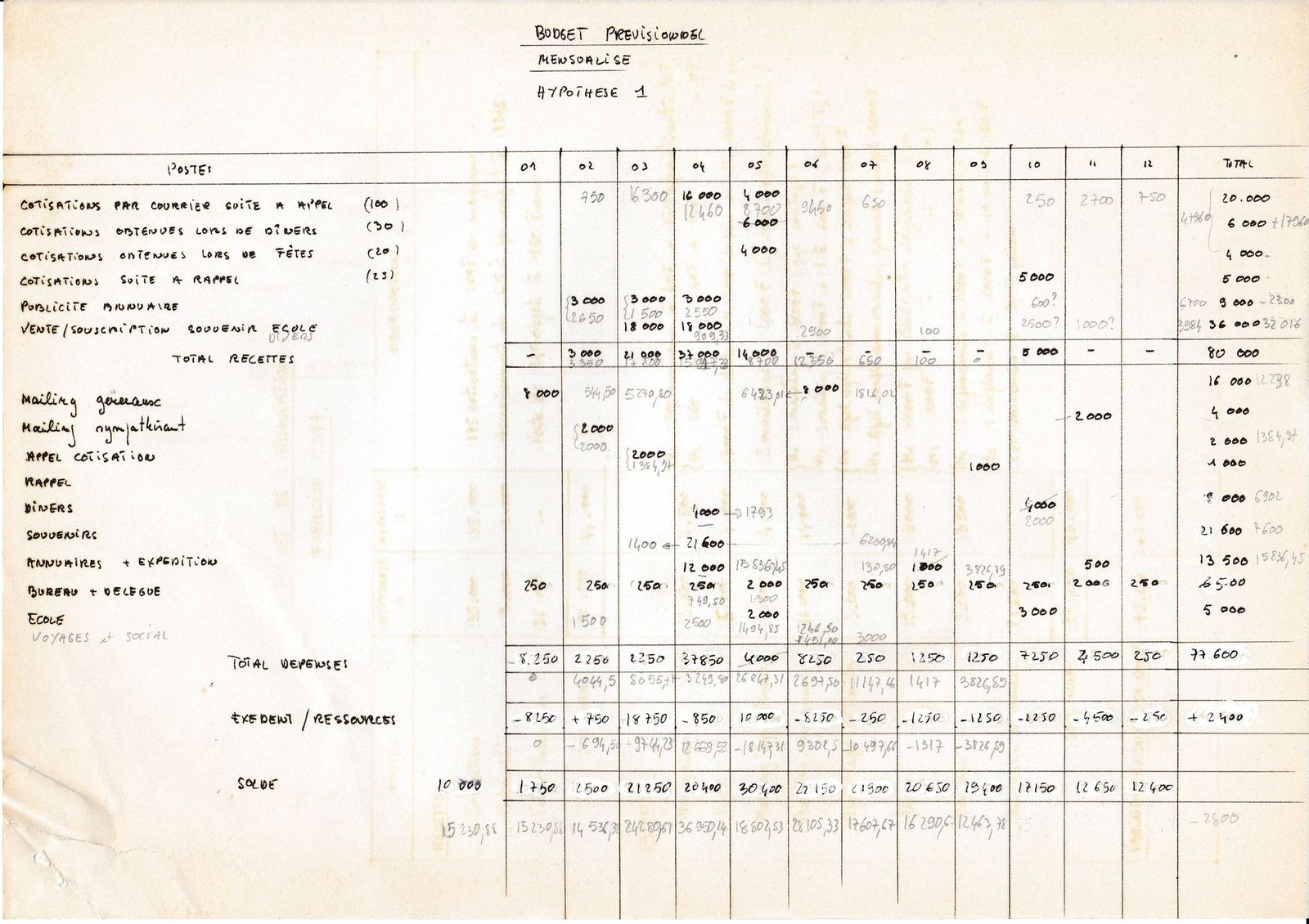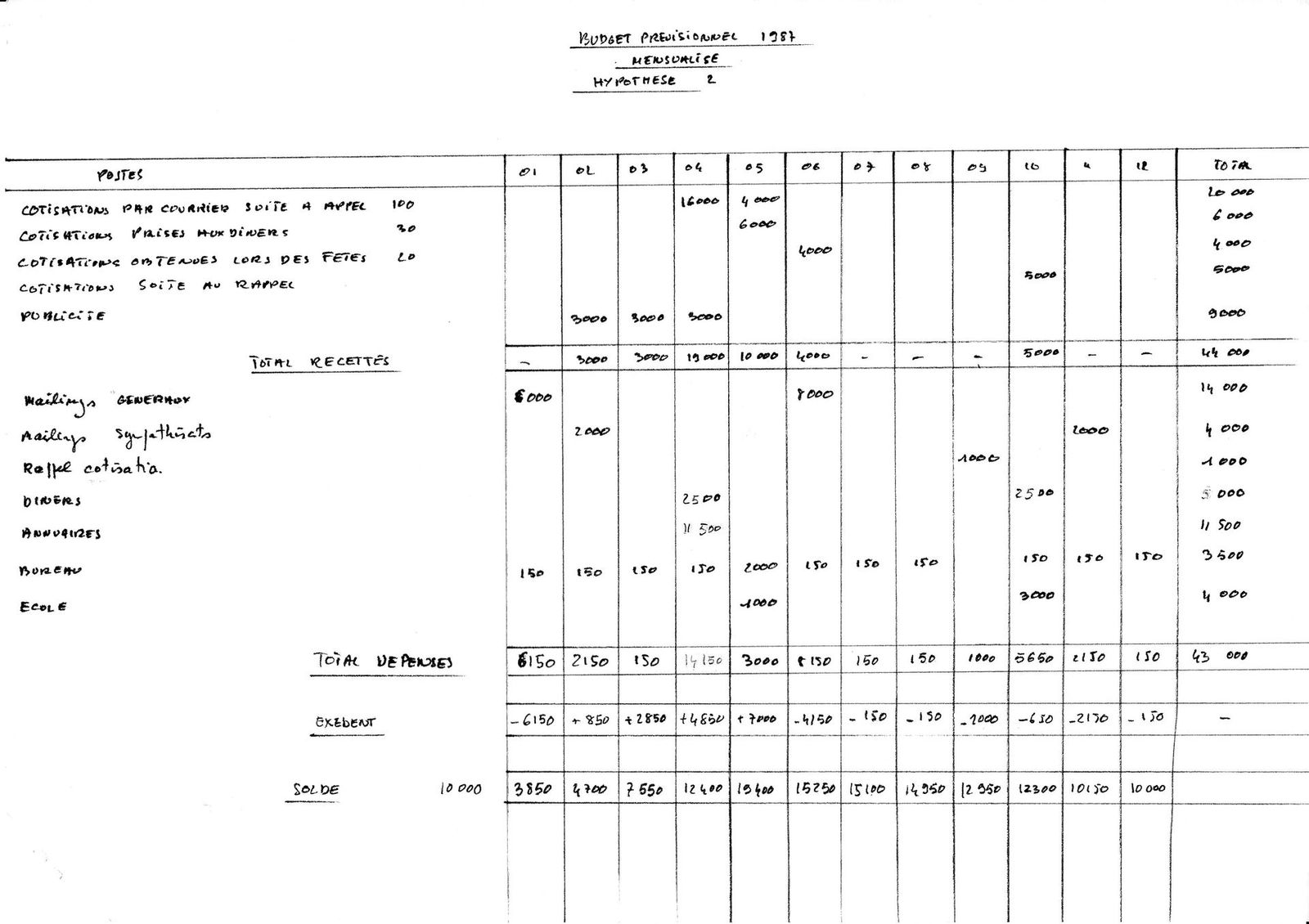 1987, budget prévisionnel pour l'Association