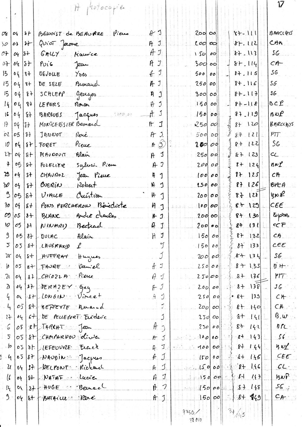 1987, état des cootisations