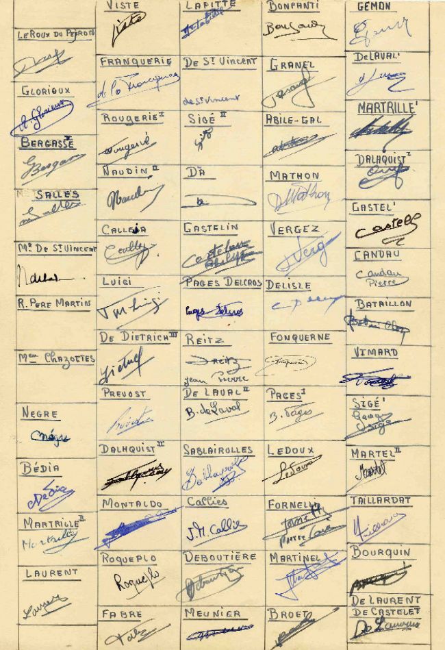 Rangée du bas : Alain Le Roux-Dupeyron, Antoine Glorieux 2, Gaston Bergasse, Michel Salles, Mr de St Vincent, Le Père Martin, Mr Chazottes, Claude Nègre, Jean-Claude Bédia, Pierre Martrille 2, Jean Laurent