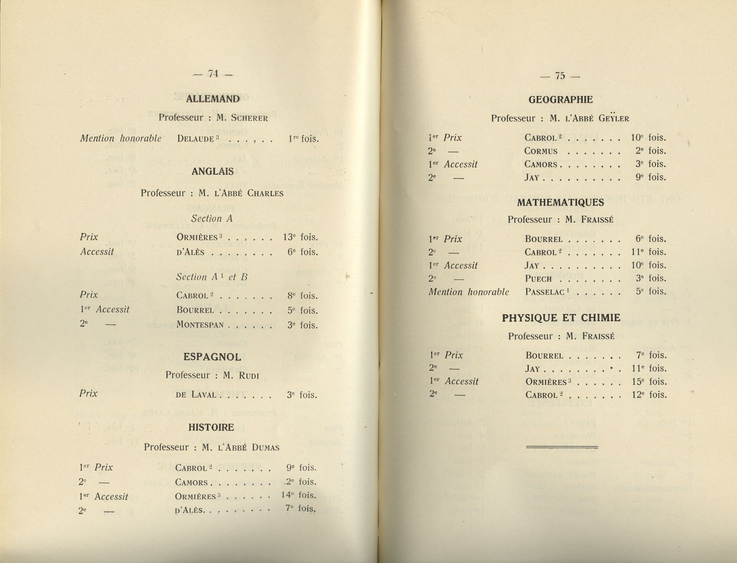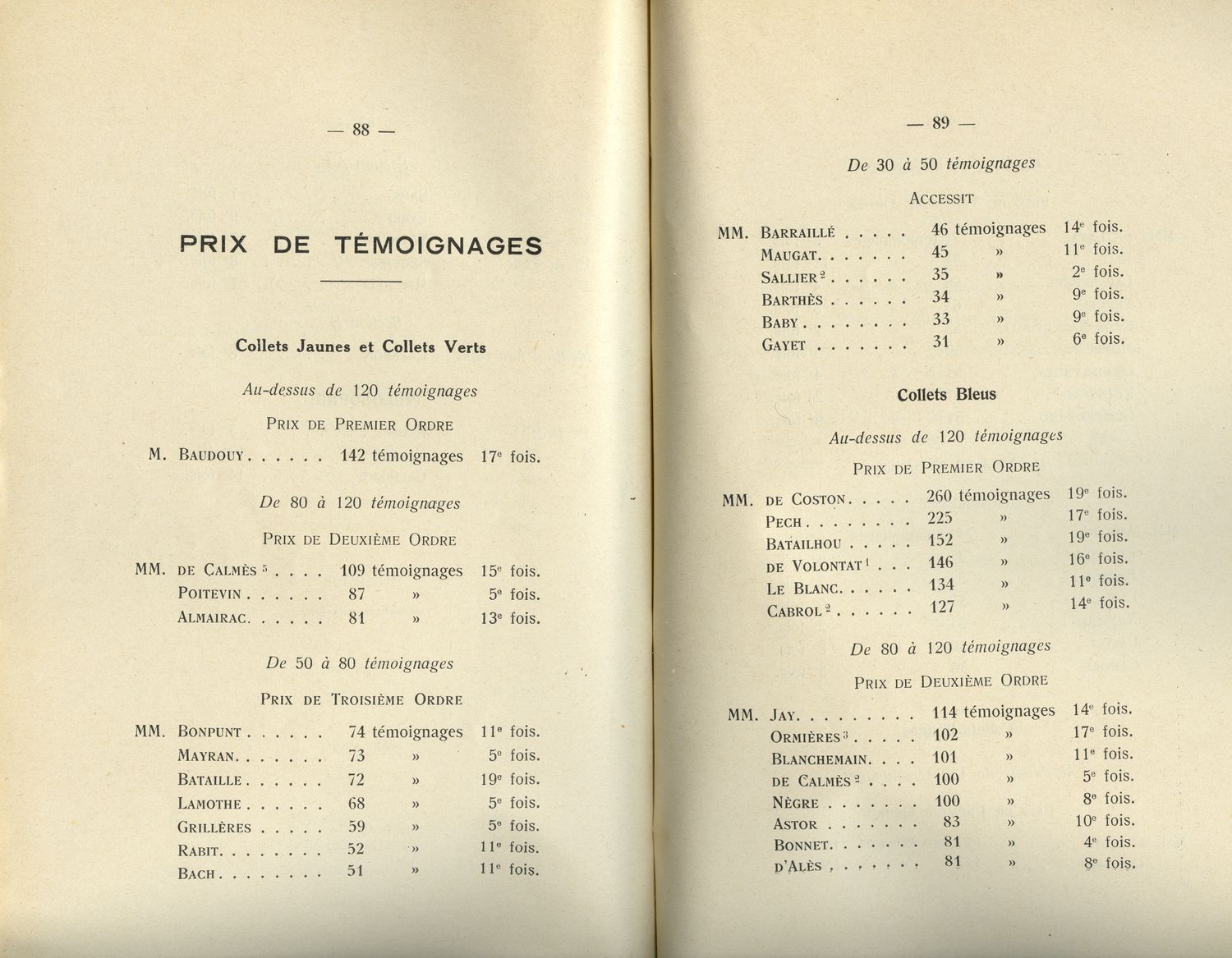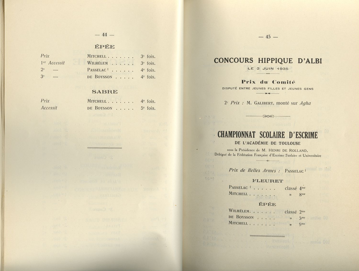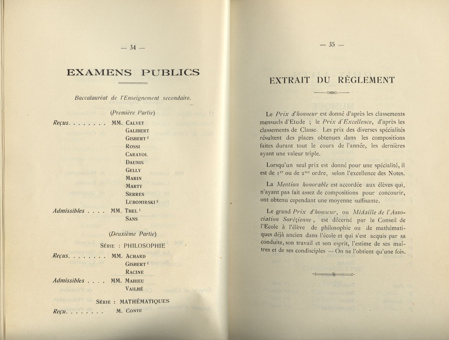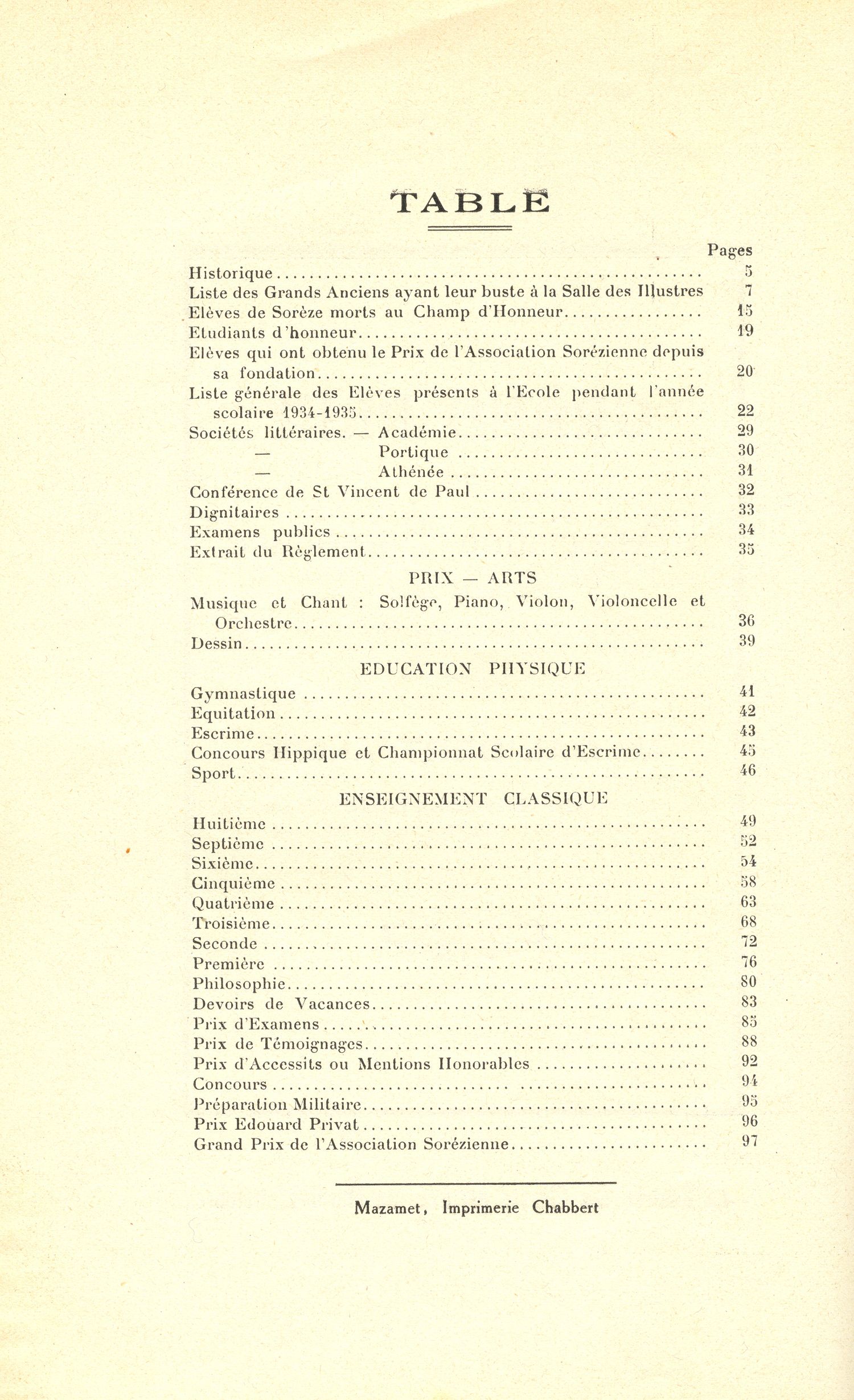 Le Palmarès 1934-1935