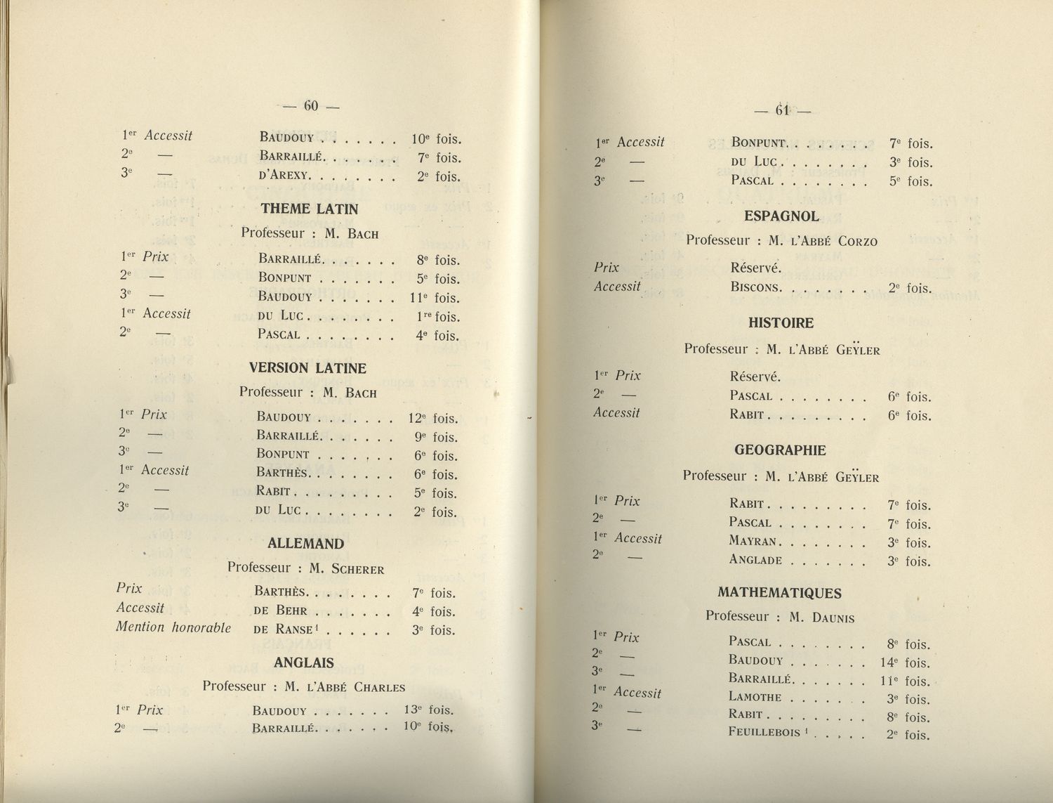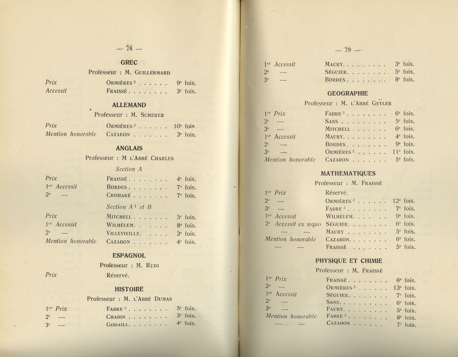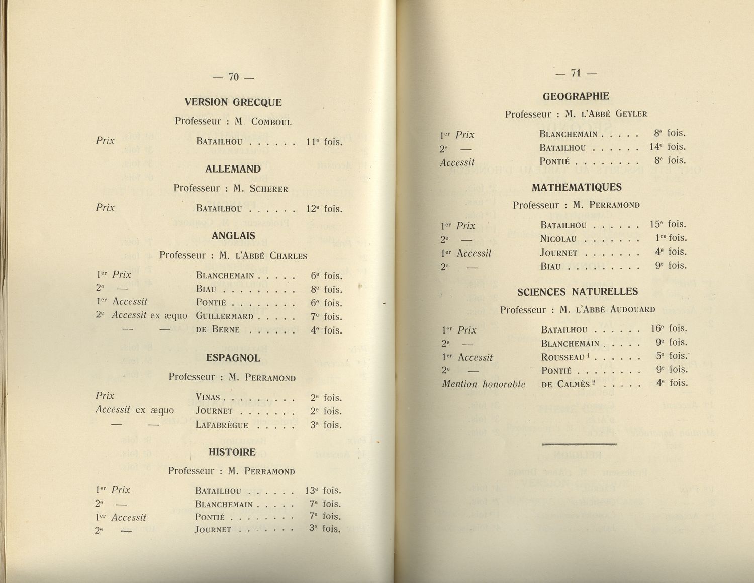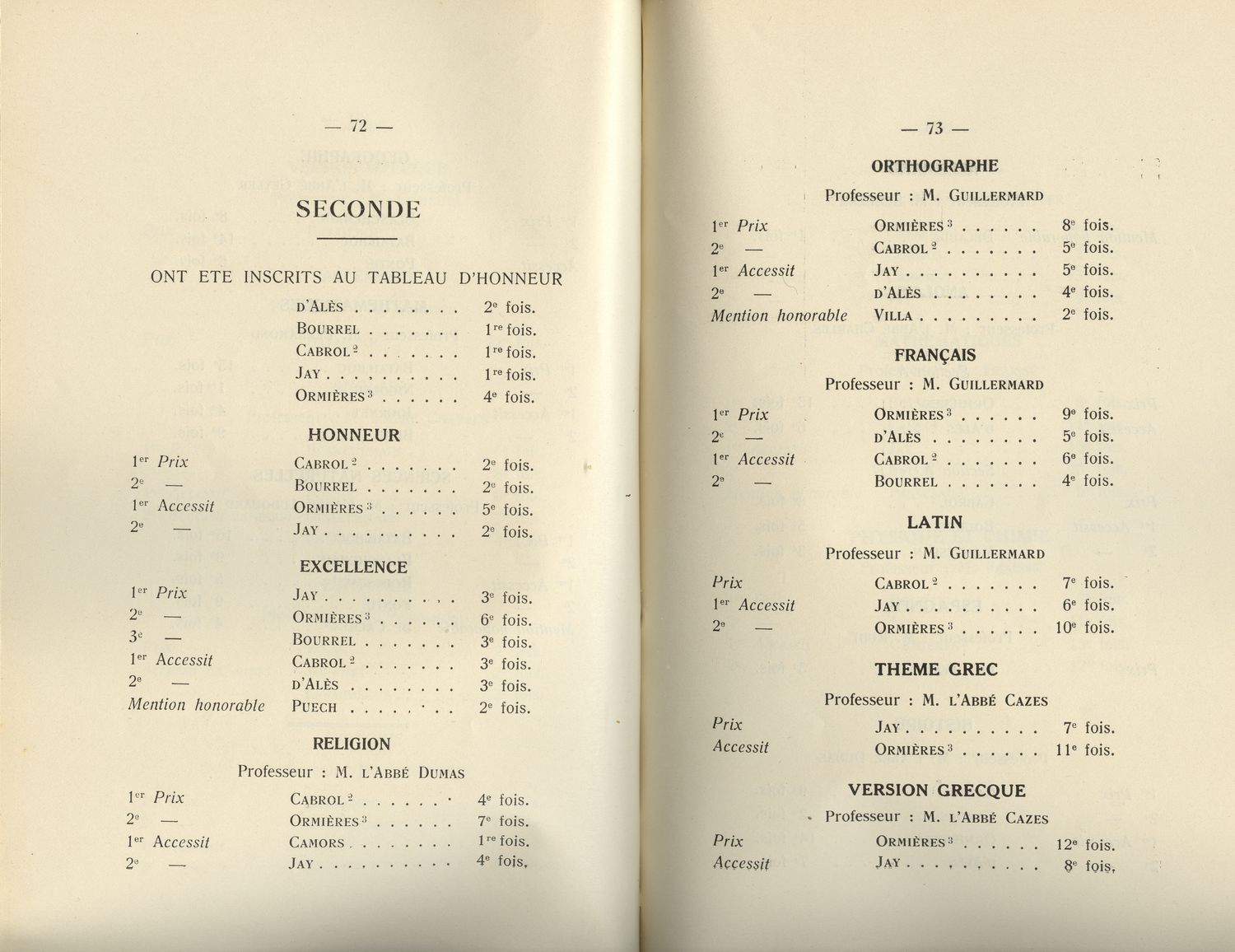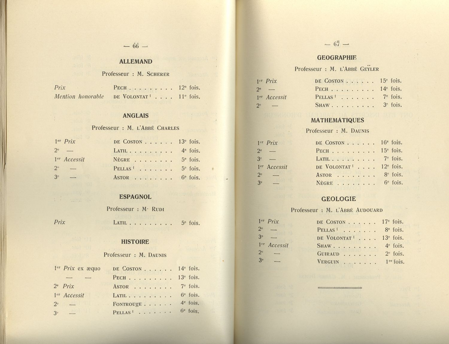 Le Palmarès 1934-1935