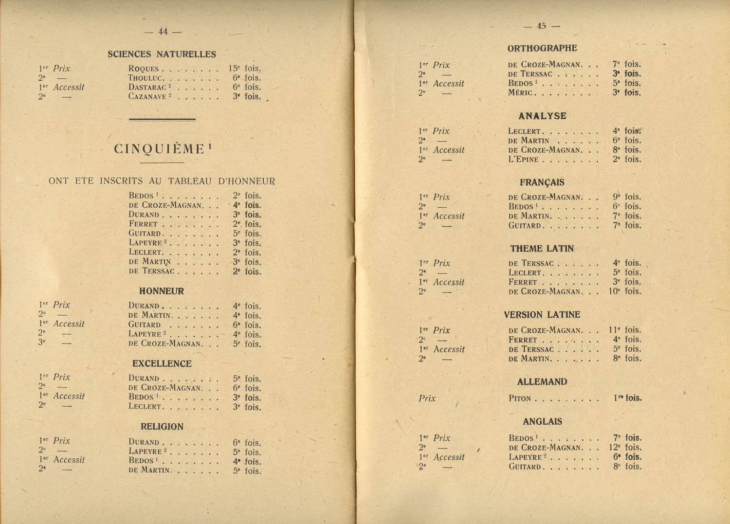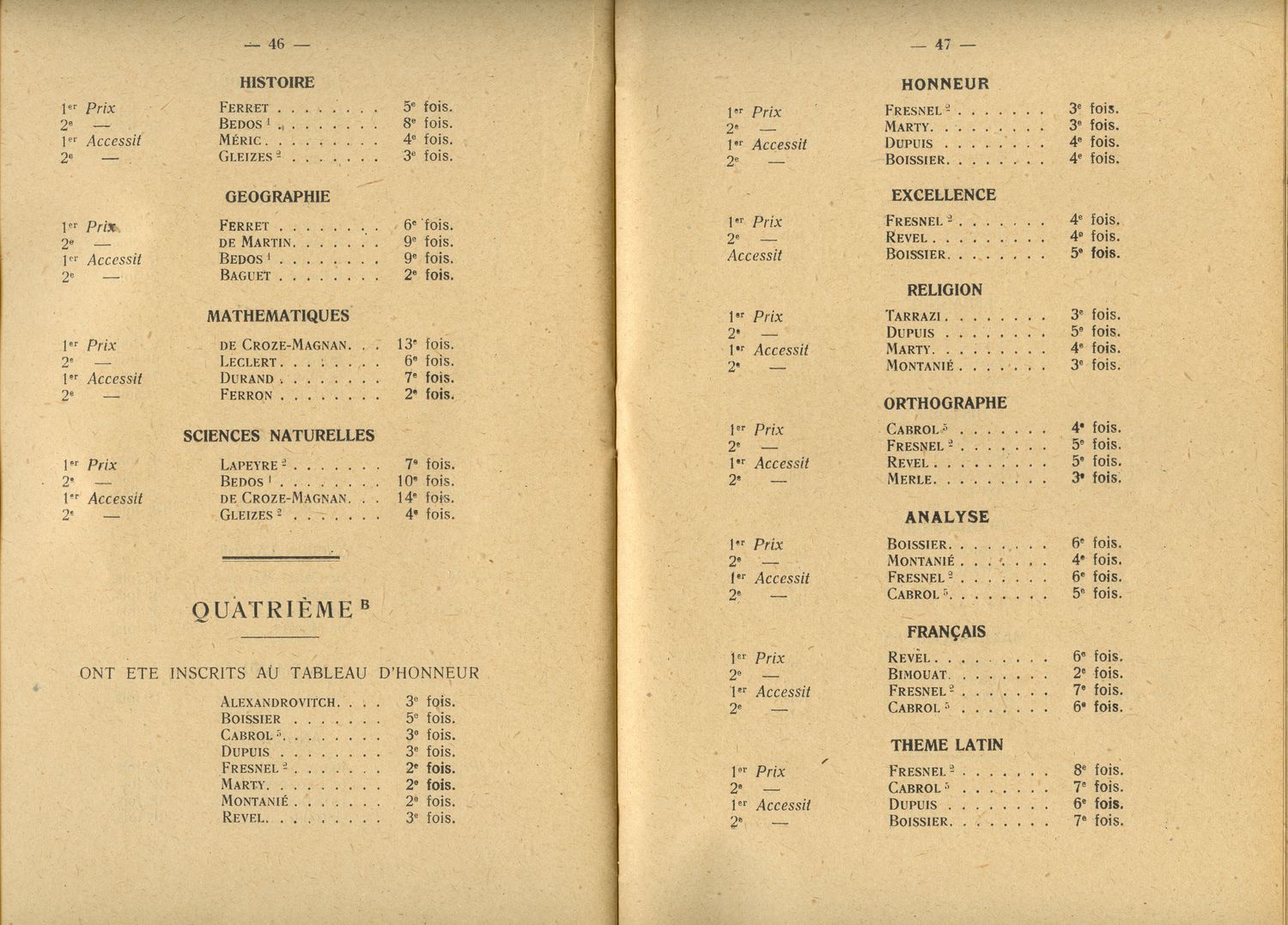 Le Palmarès 1946-1947