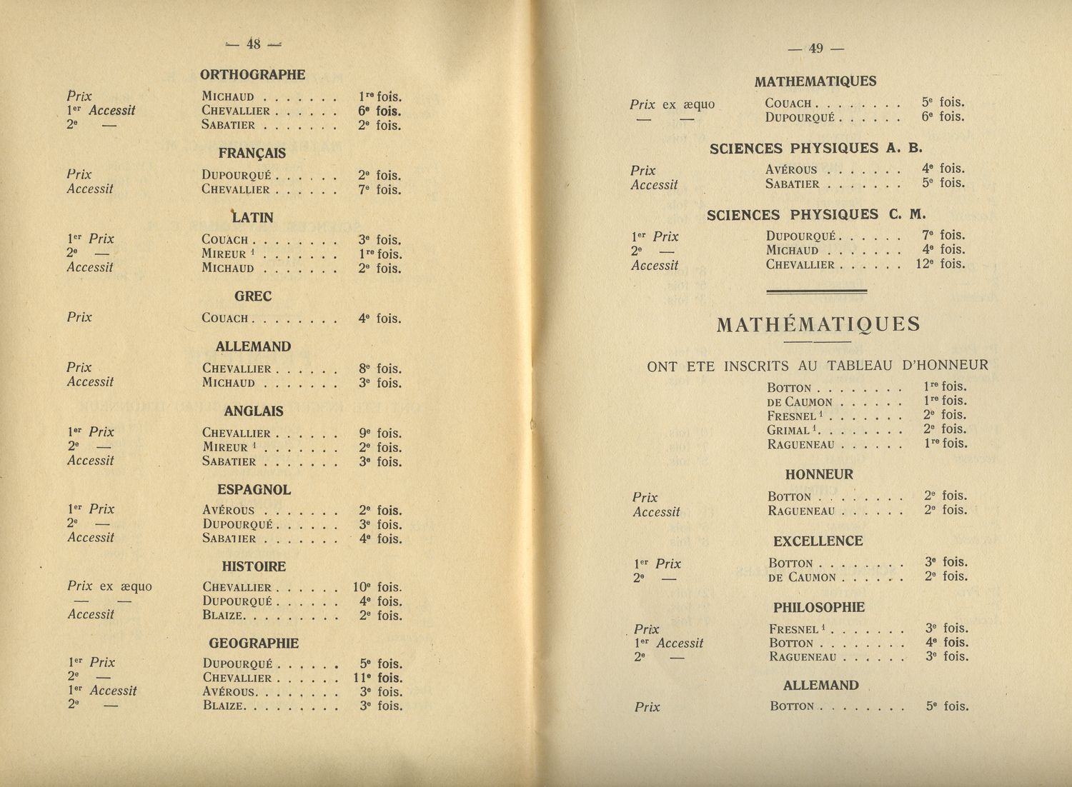 Le Palmarès 1948-1949