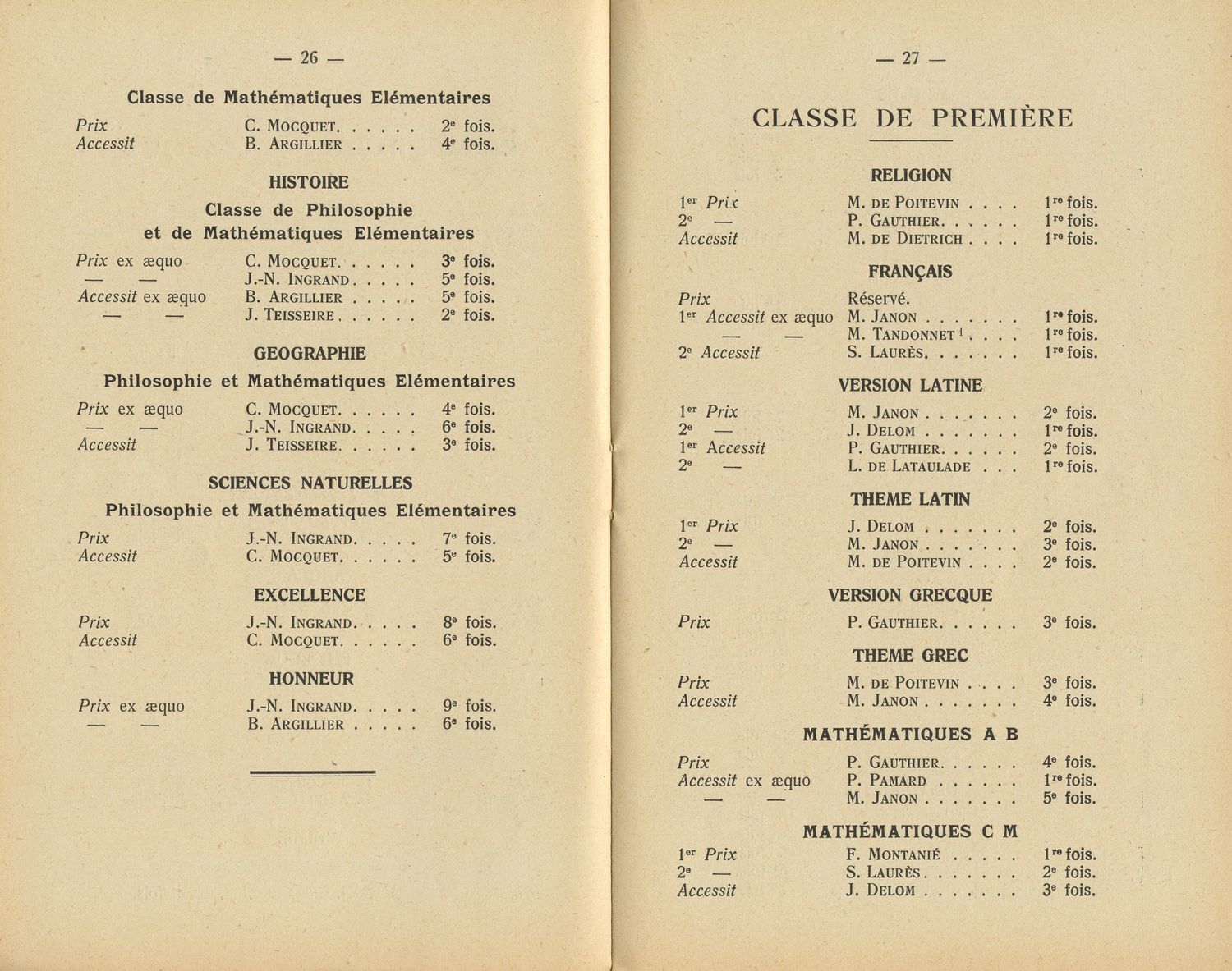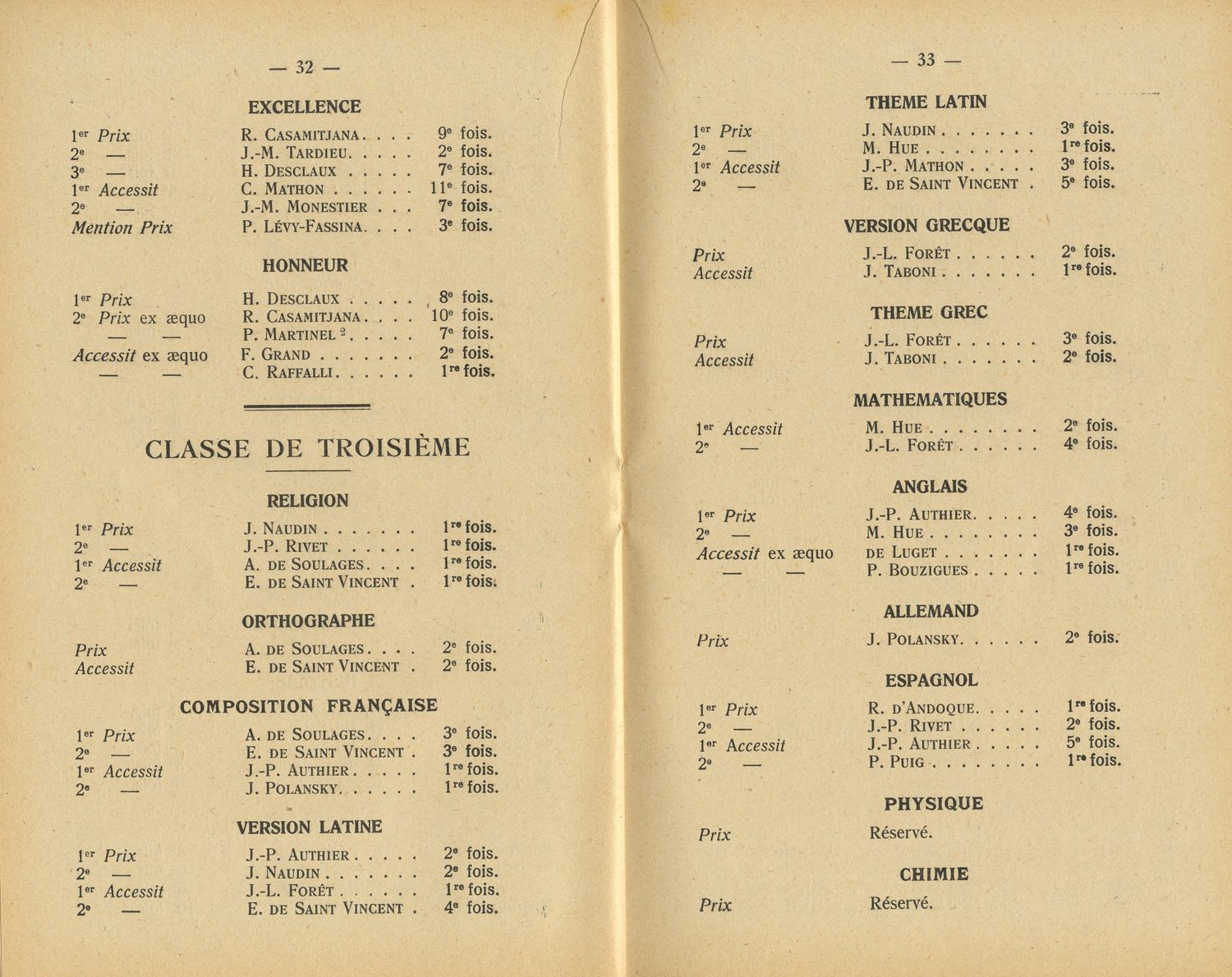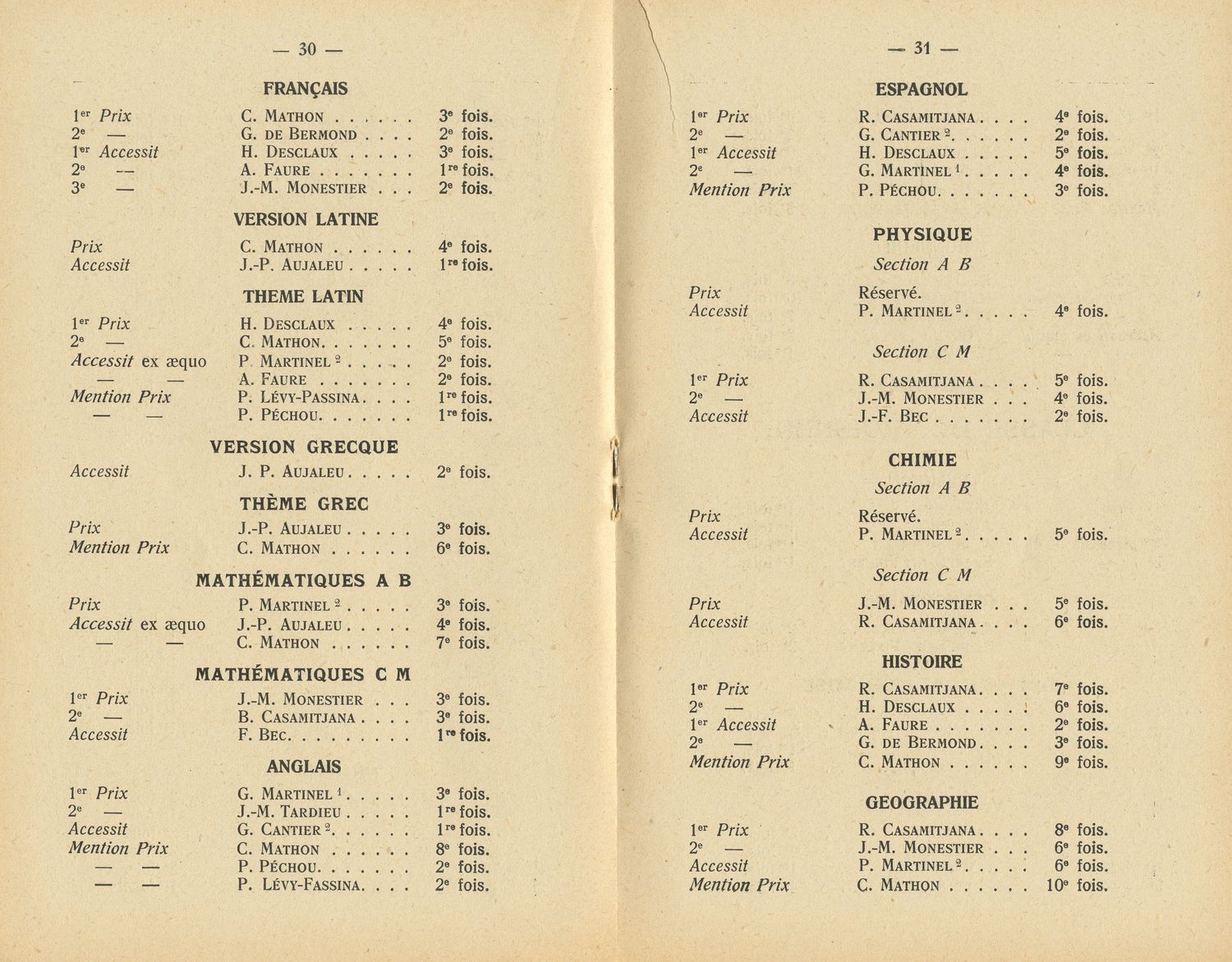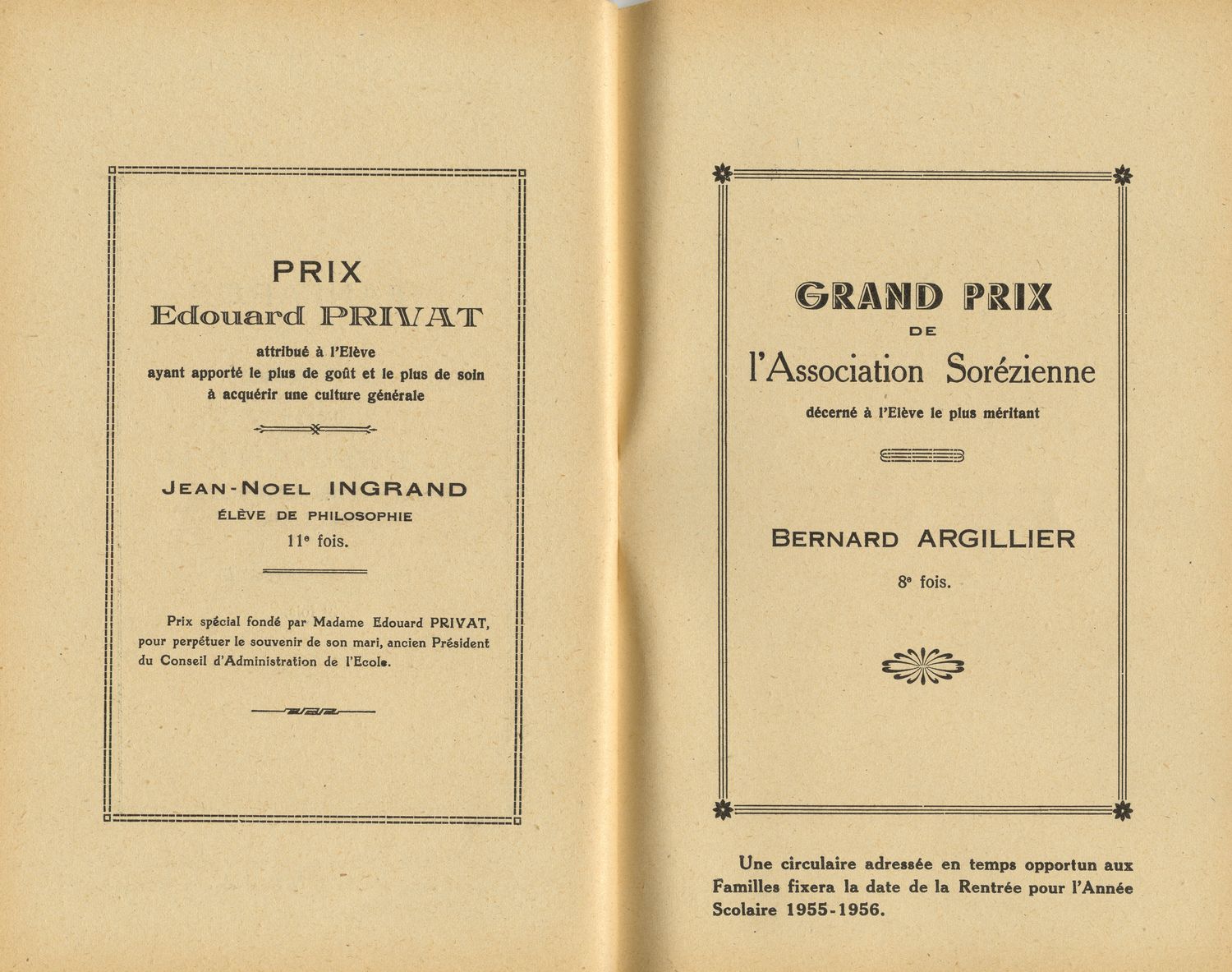 Le Palmarès 1954-1955
