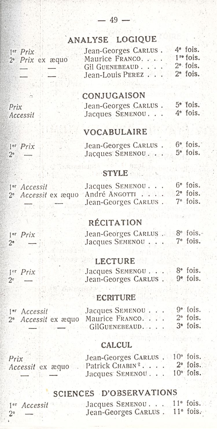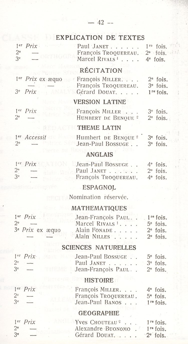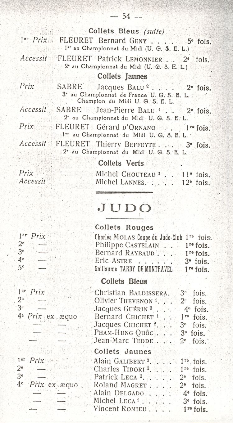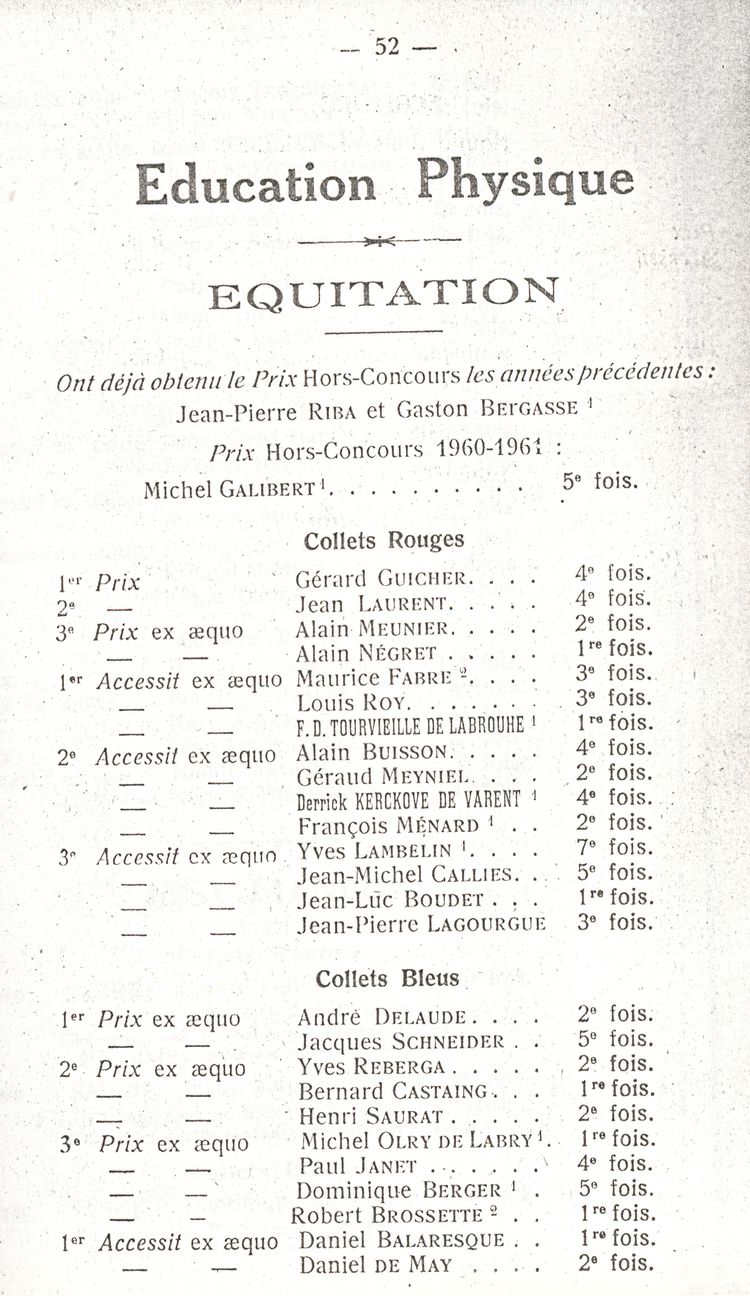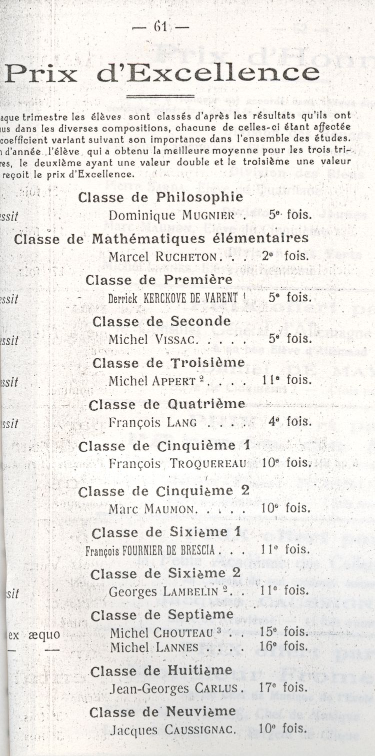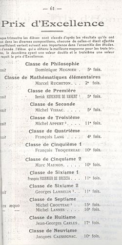 Le Palmarès 1960-1961