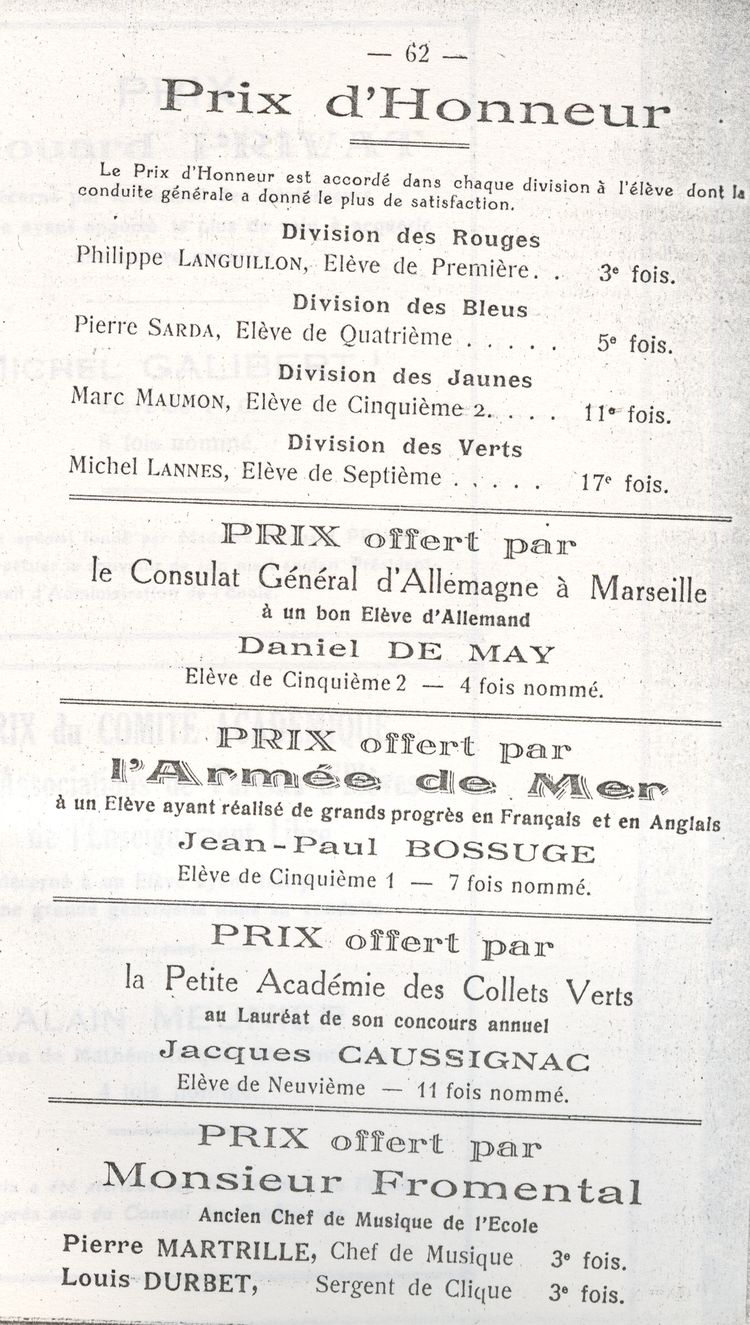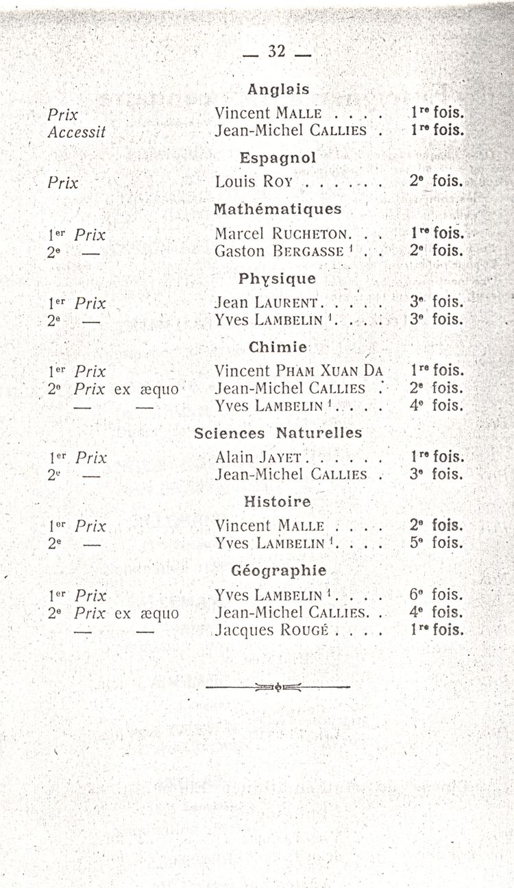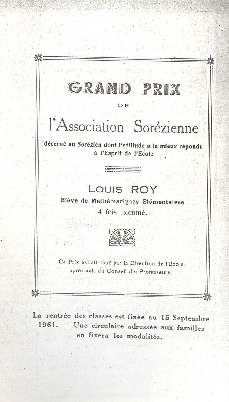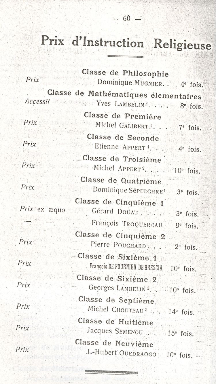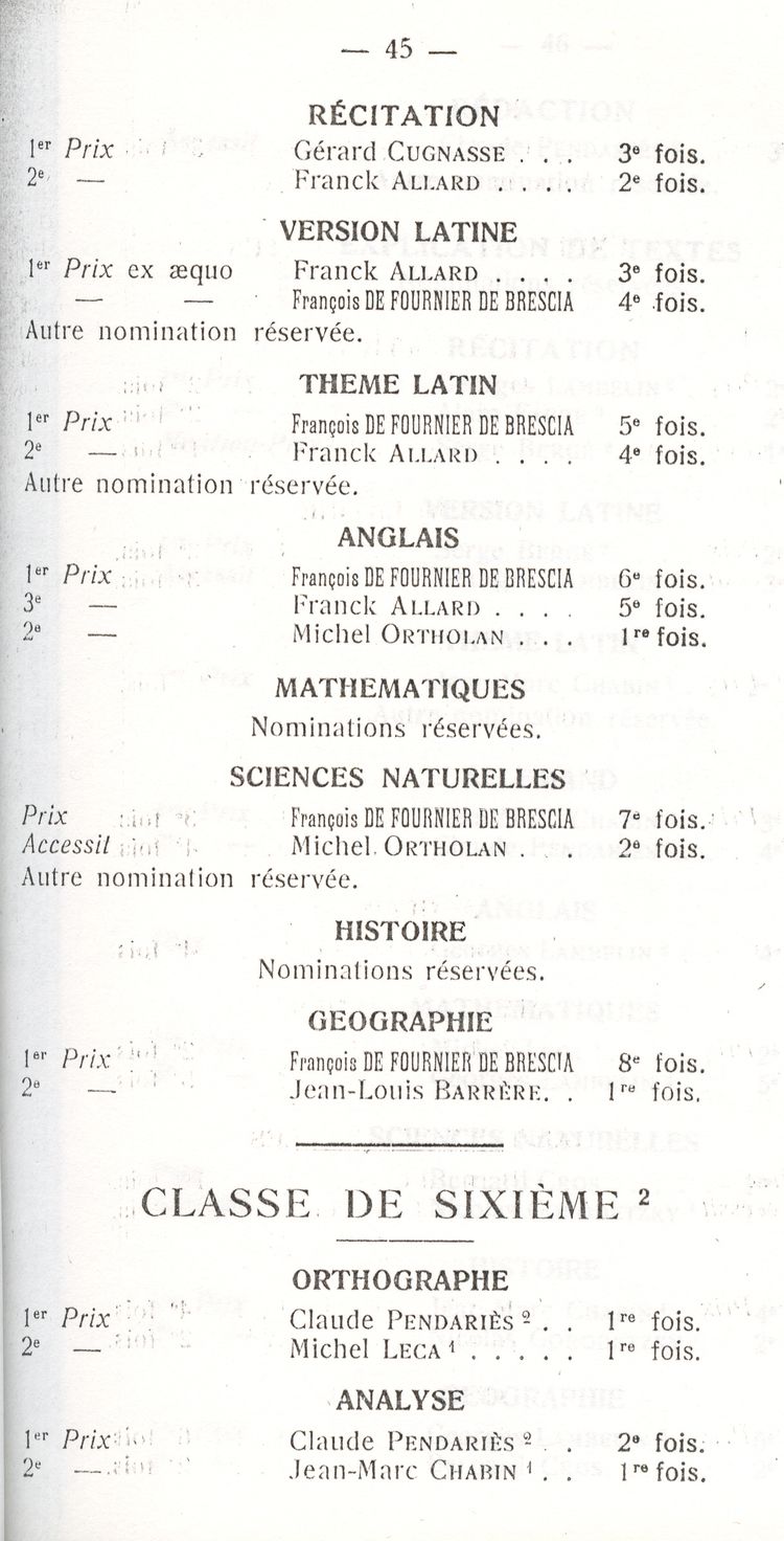 Le Palmarès 1960-1961