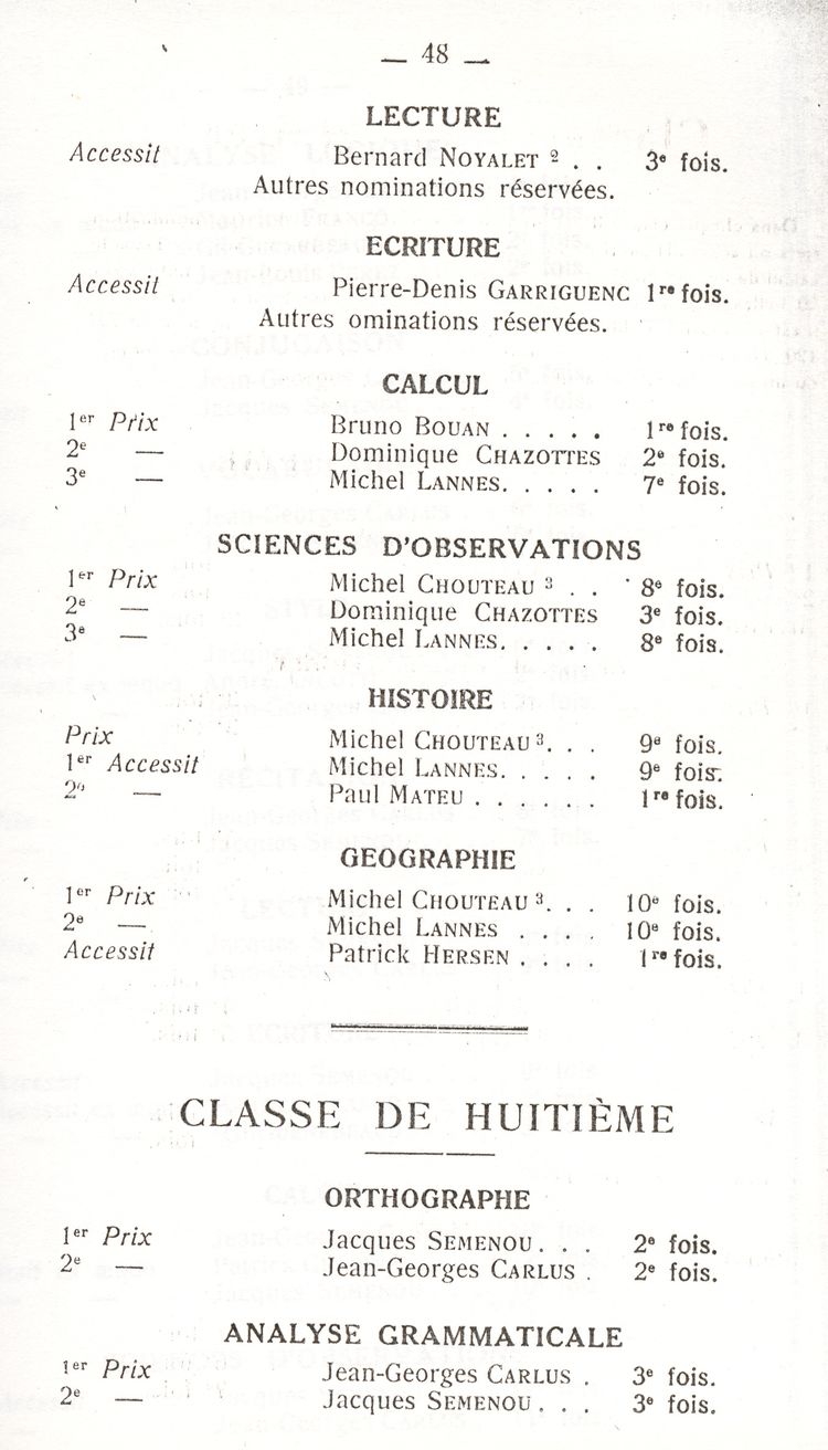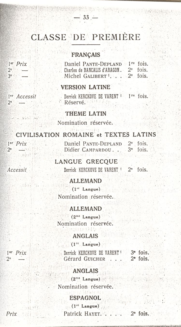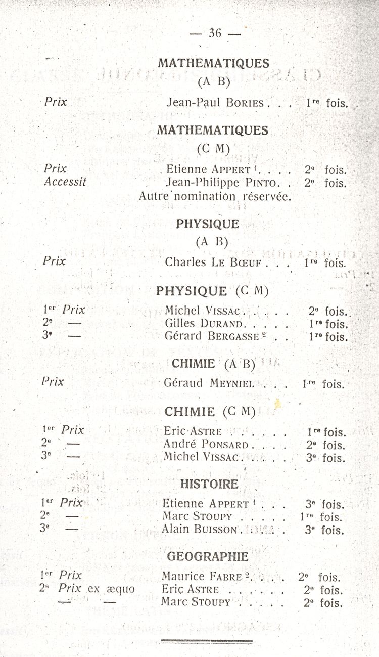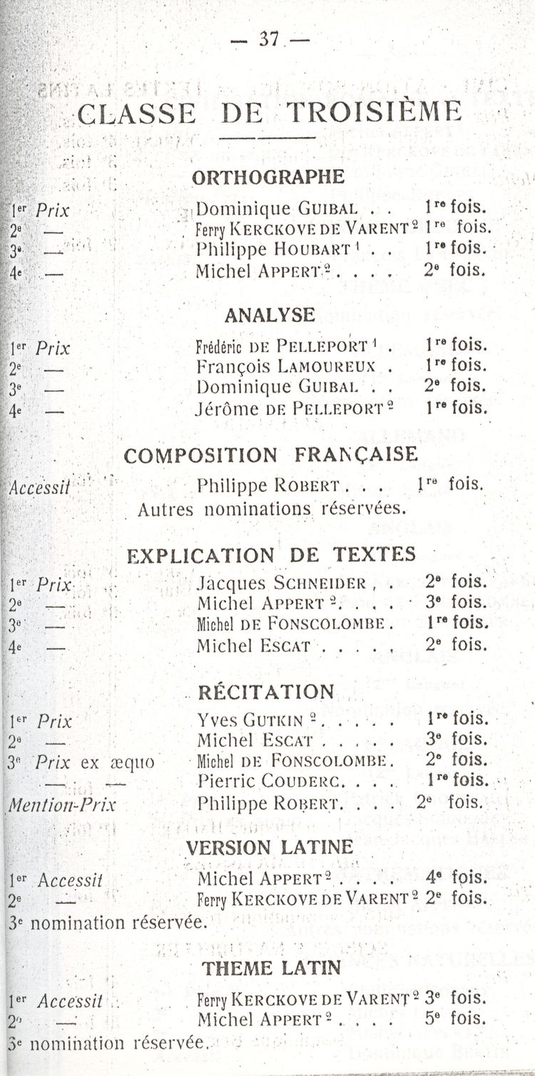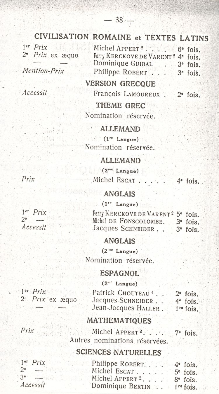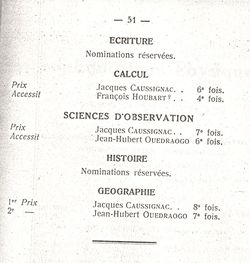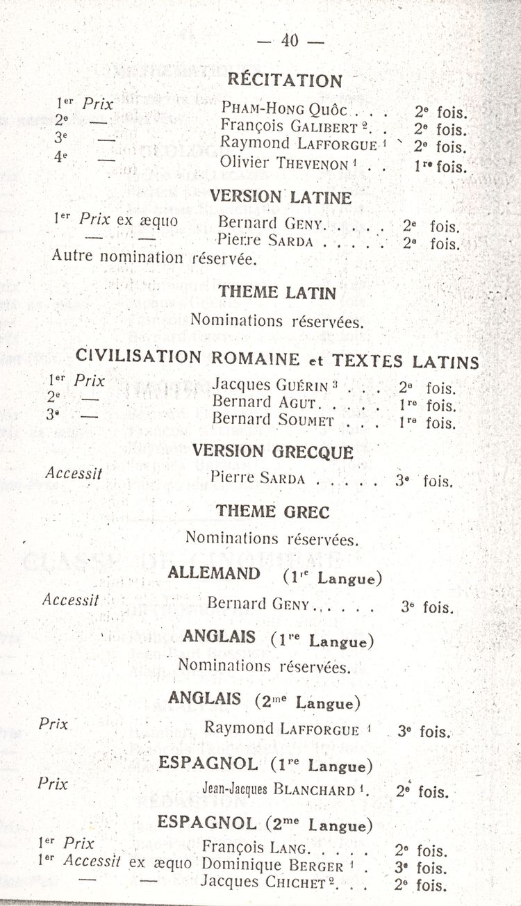 Le Palmarès 1960-1961