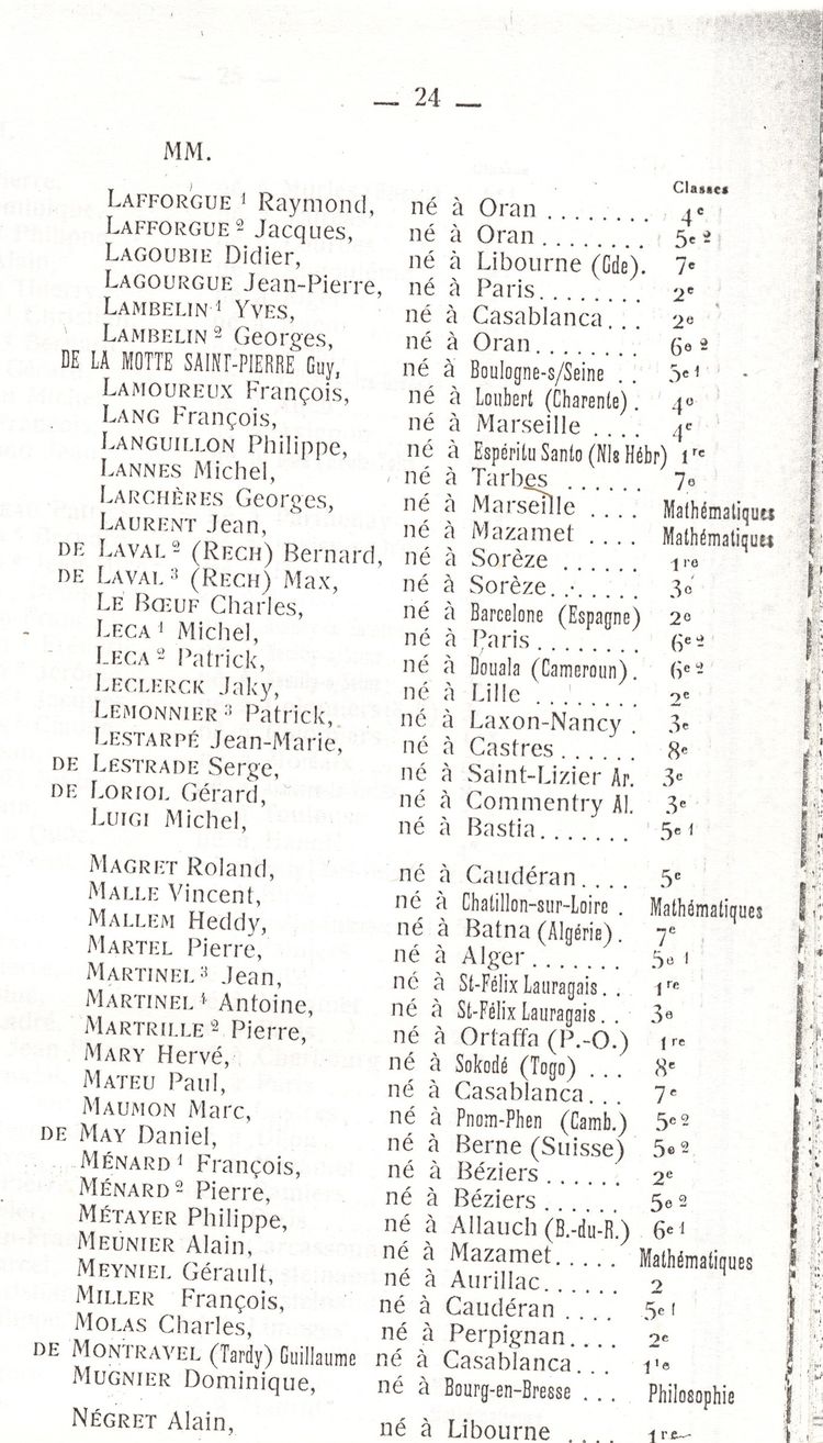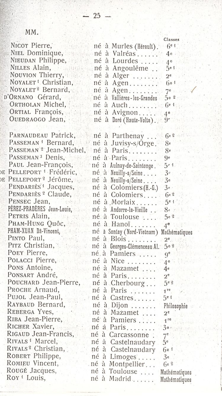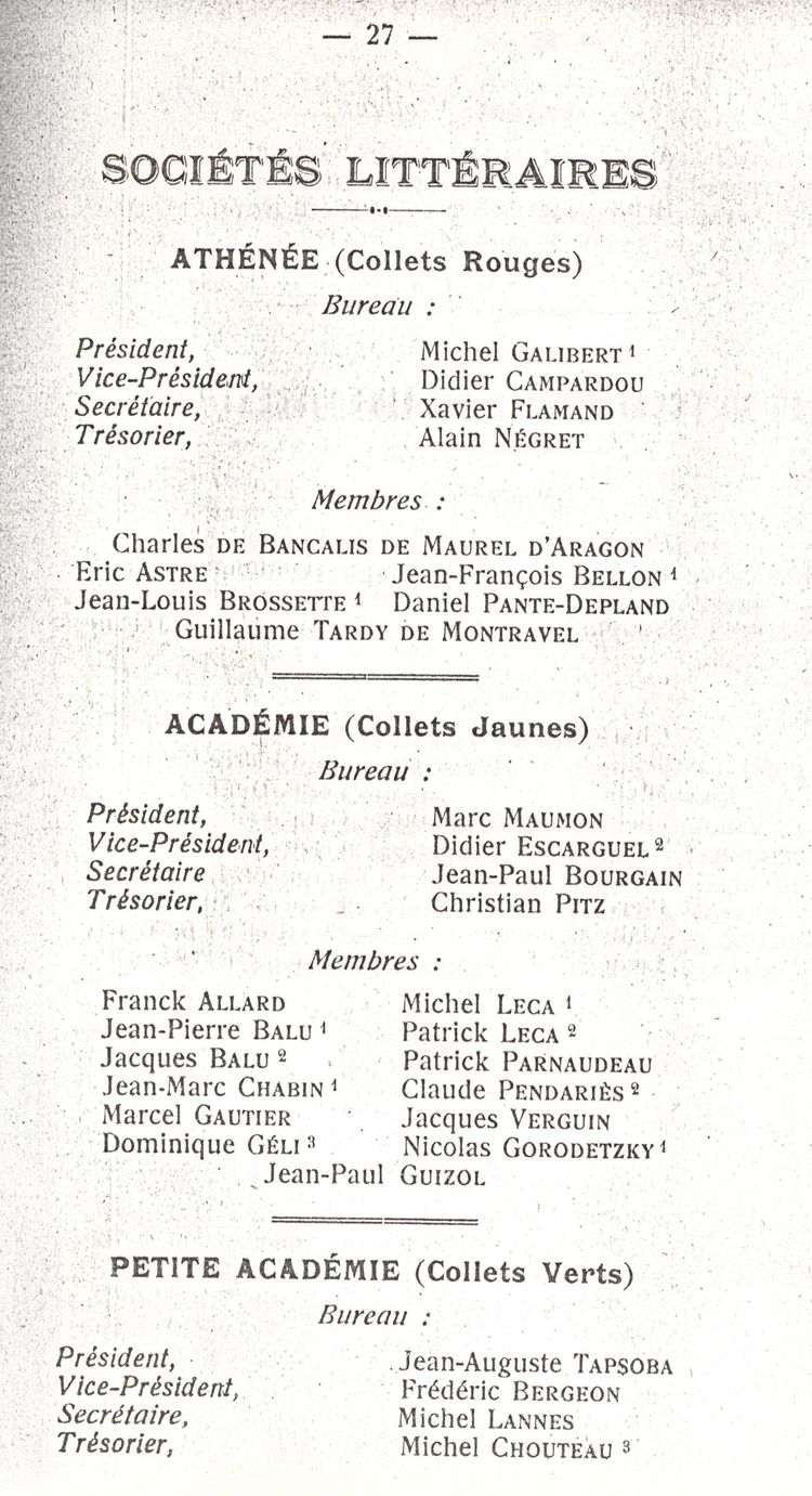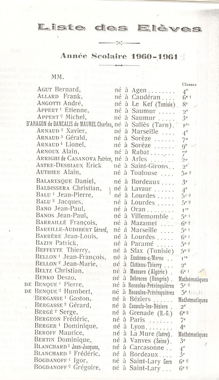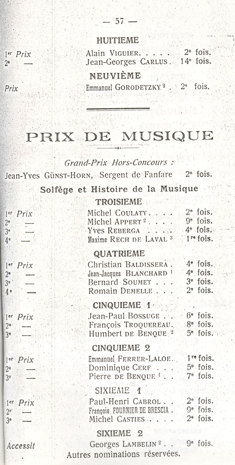 Le Palmarès 1960-1961