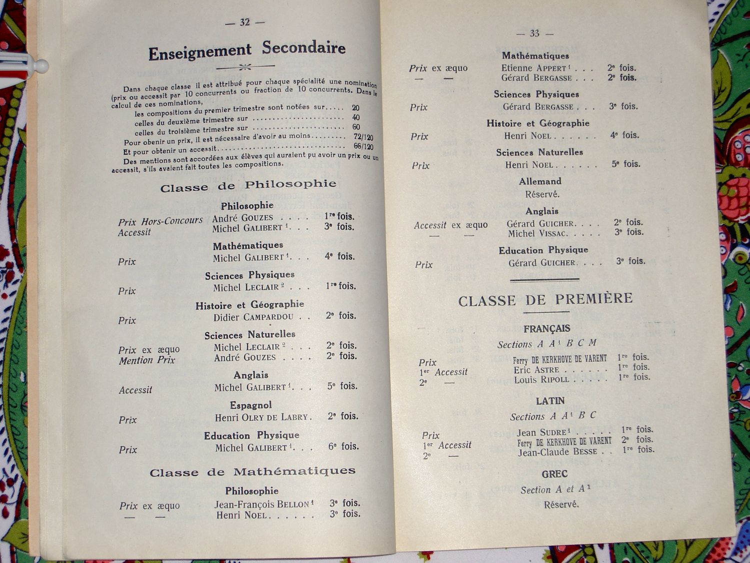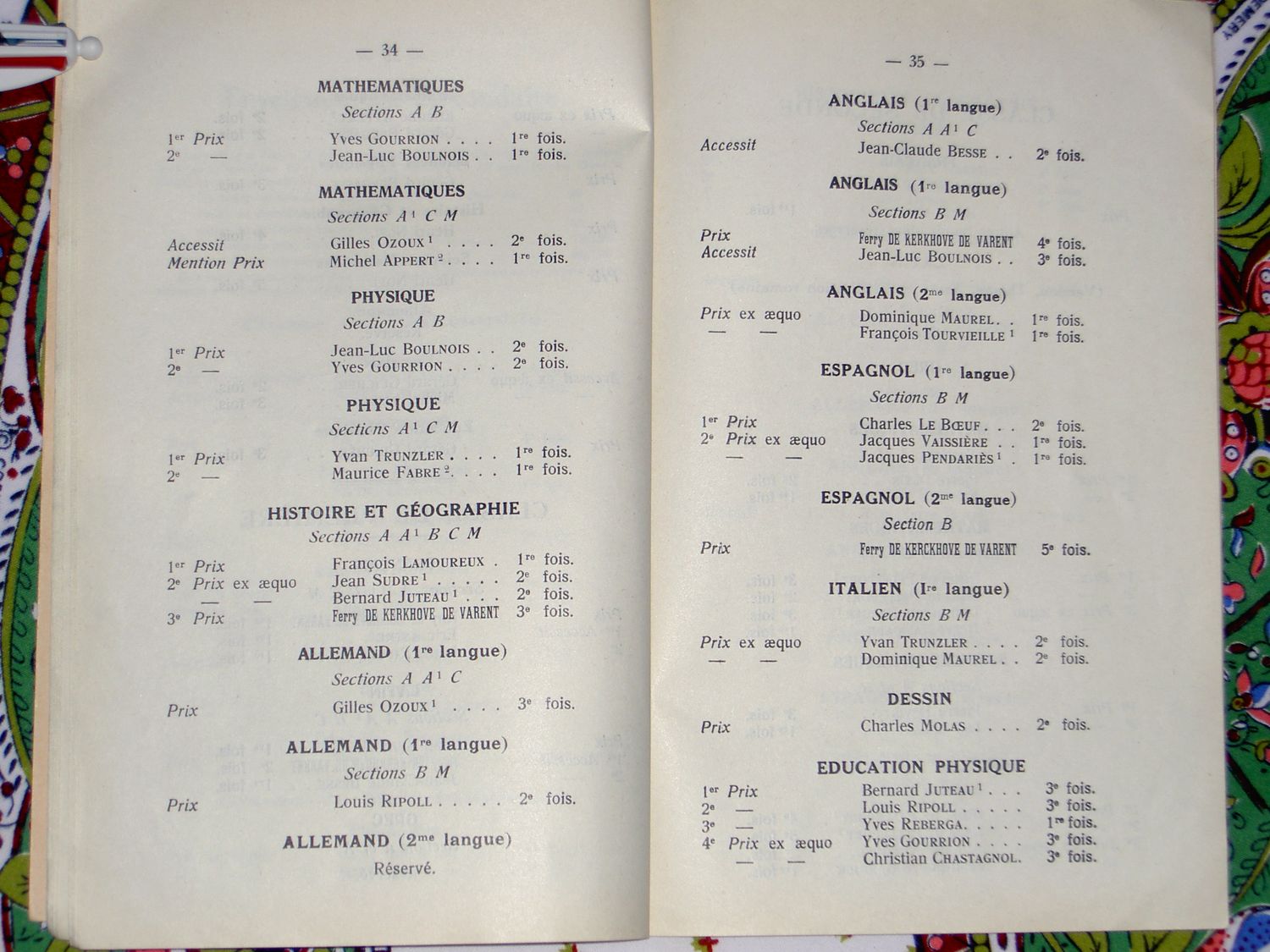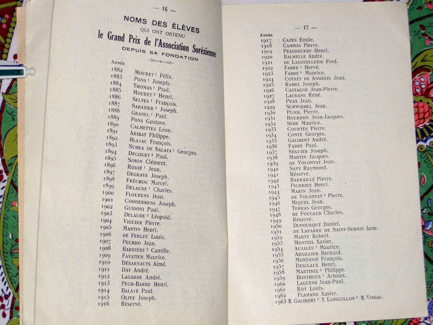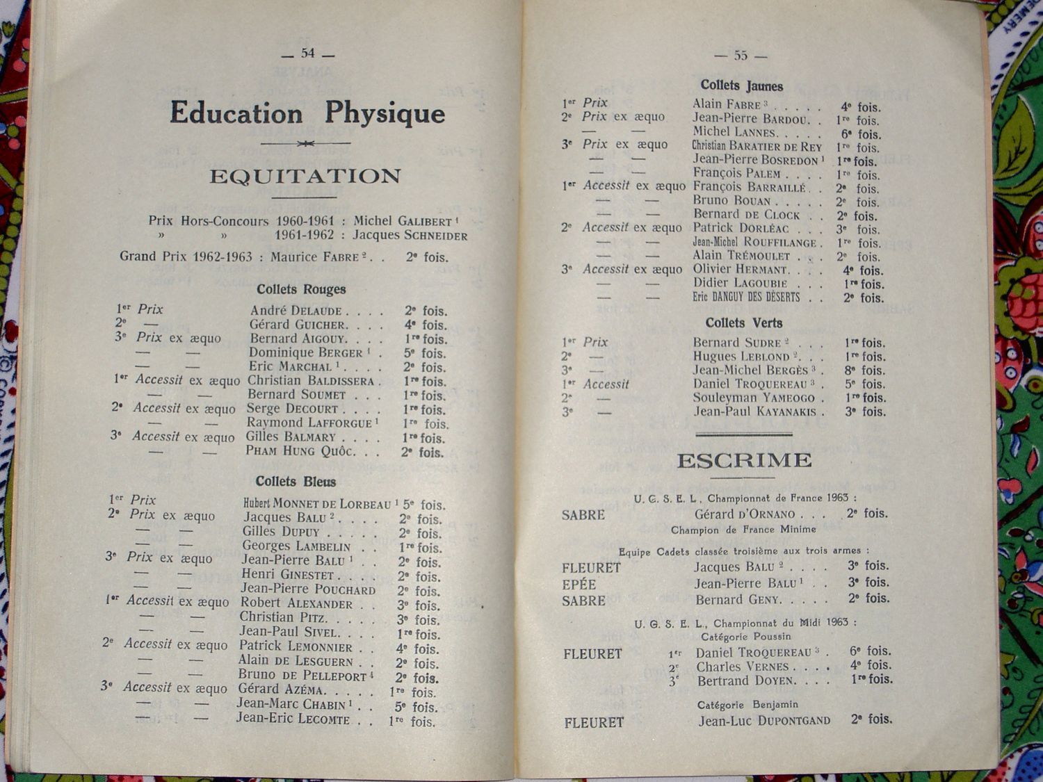 Le Palmarès 1962-1963