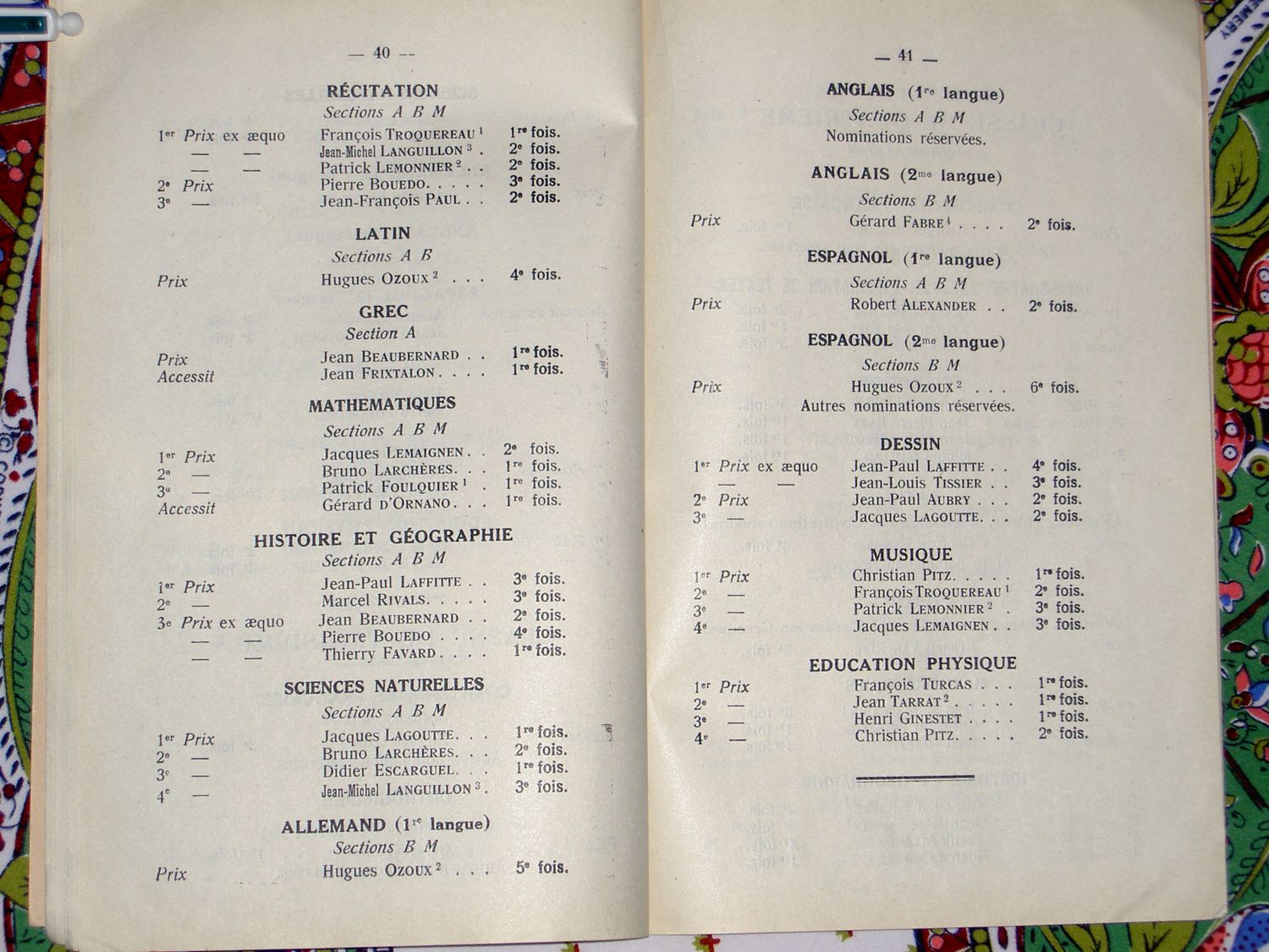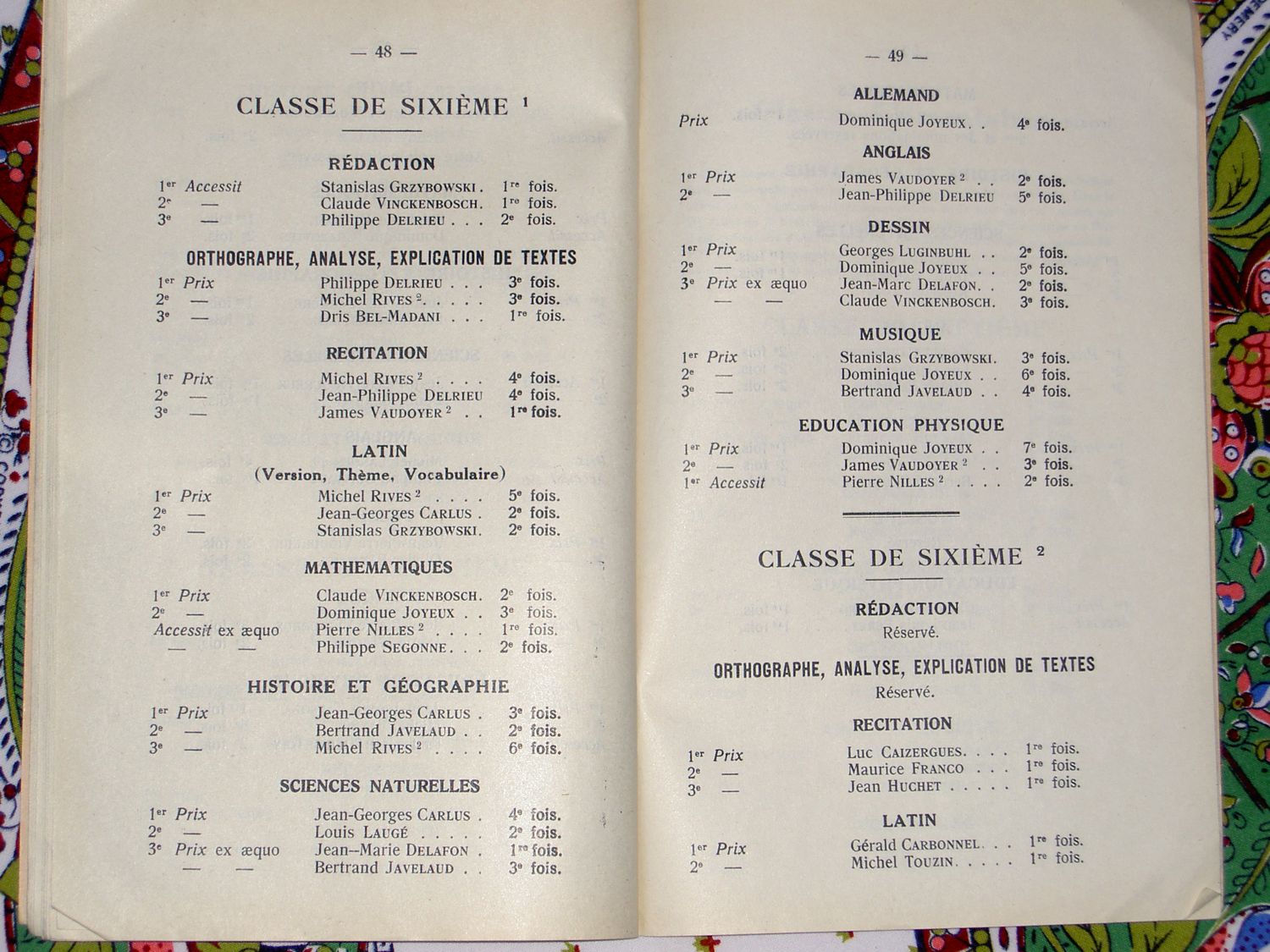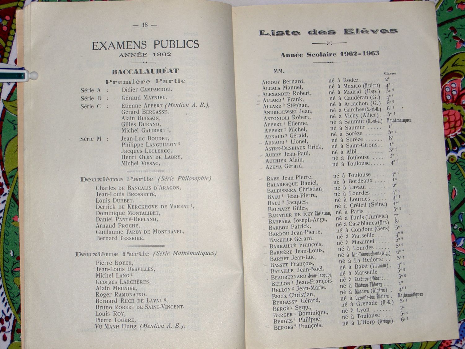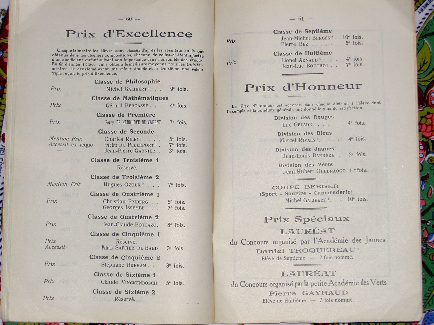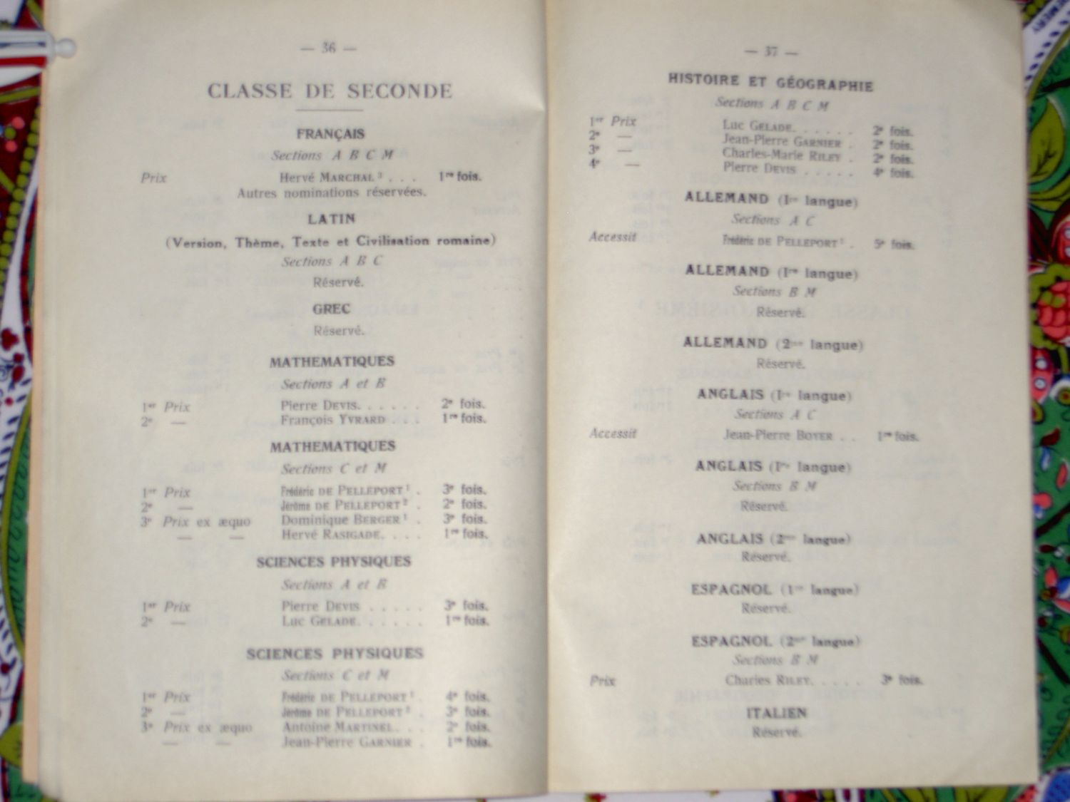 Le Palmarès 1962-1963