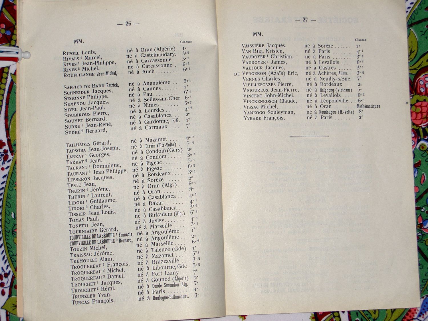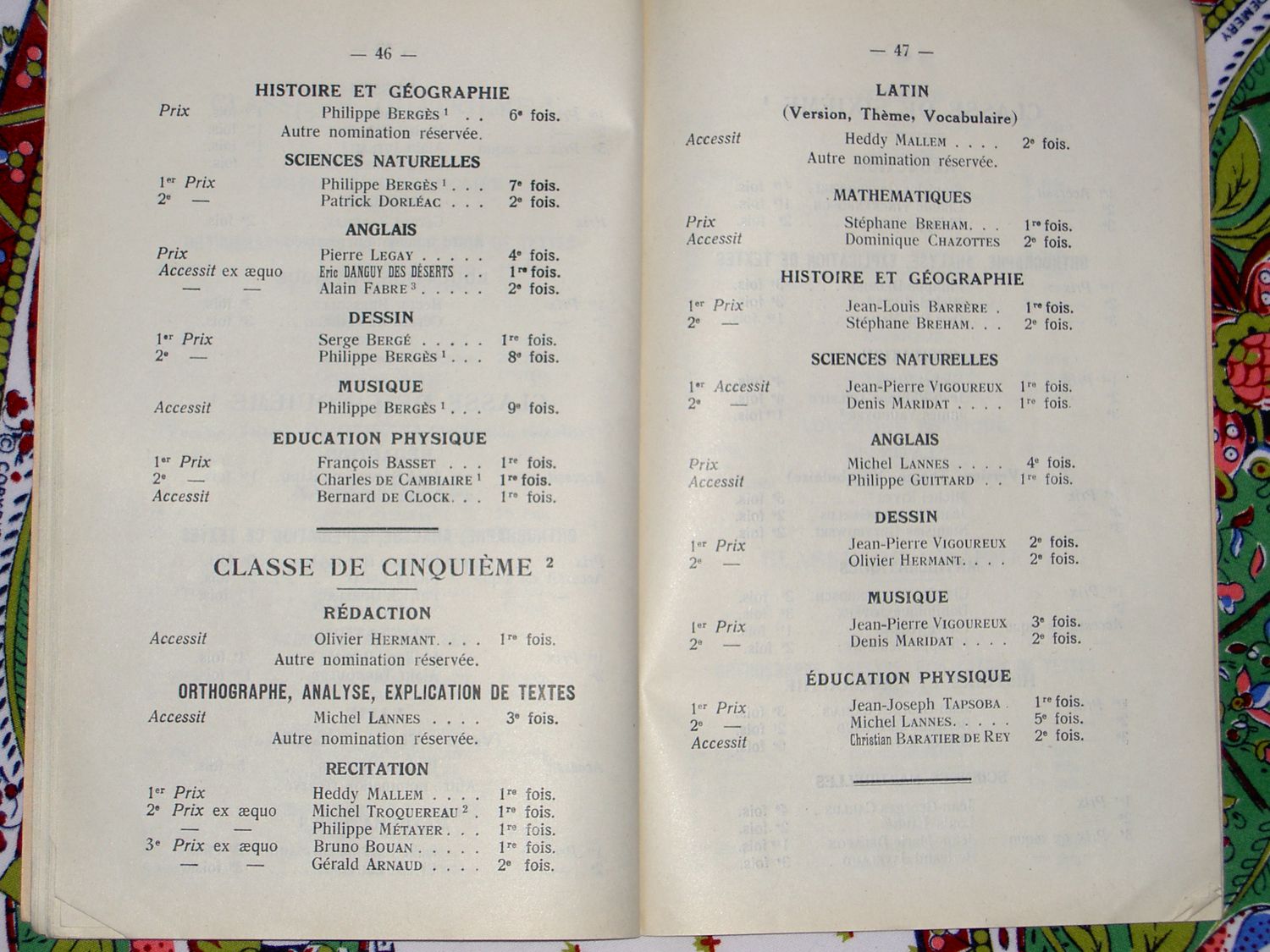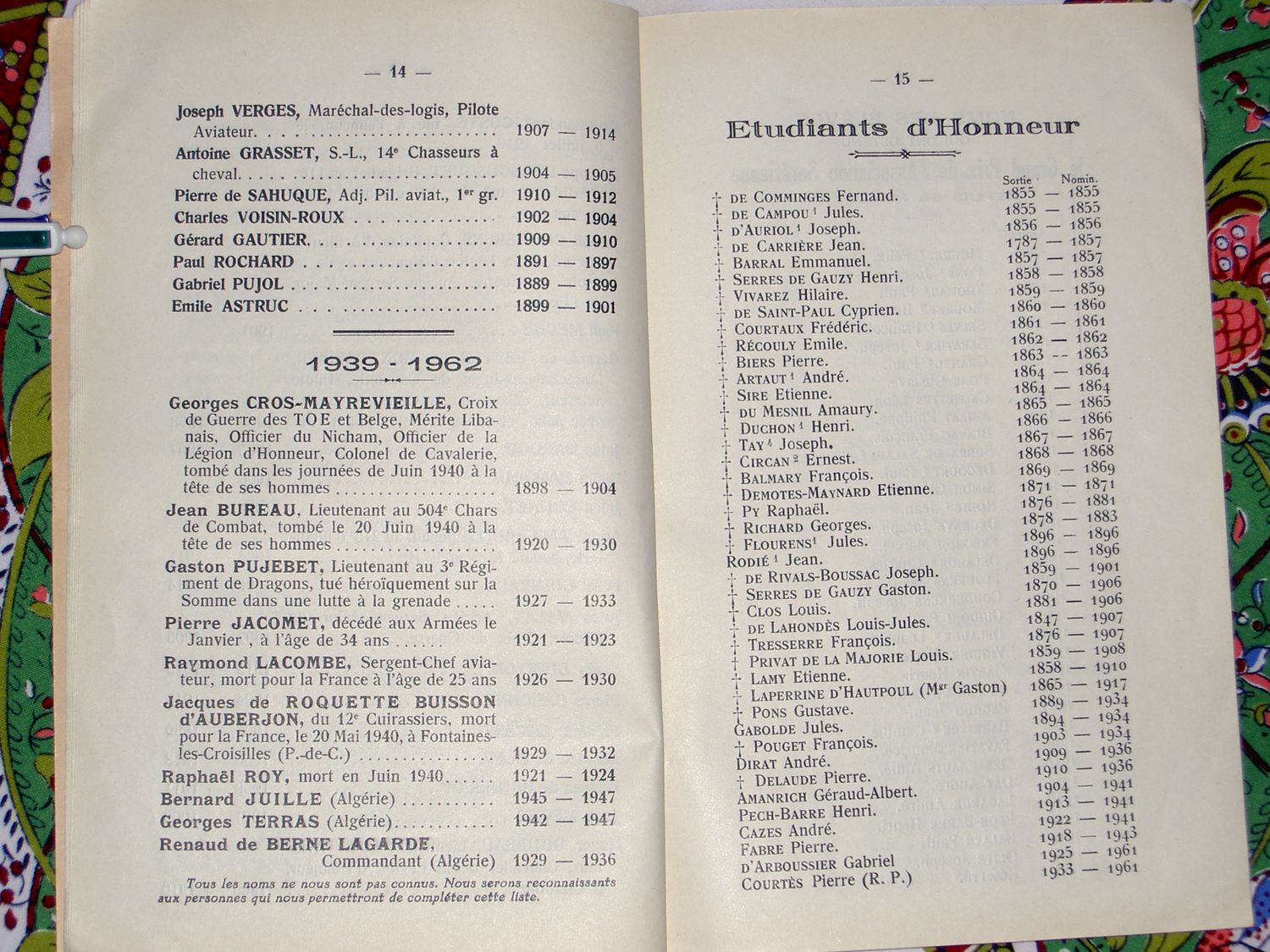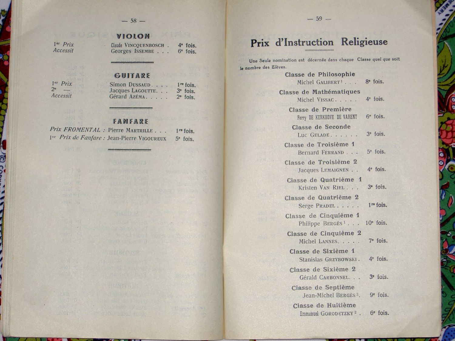 Le Palmarès 1962-1963