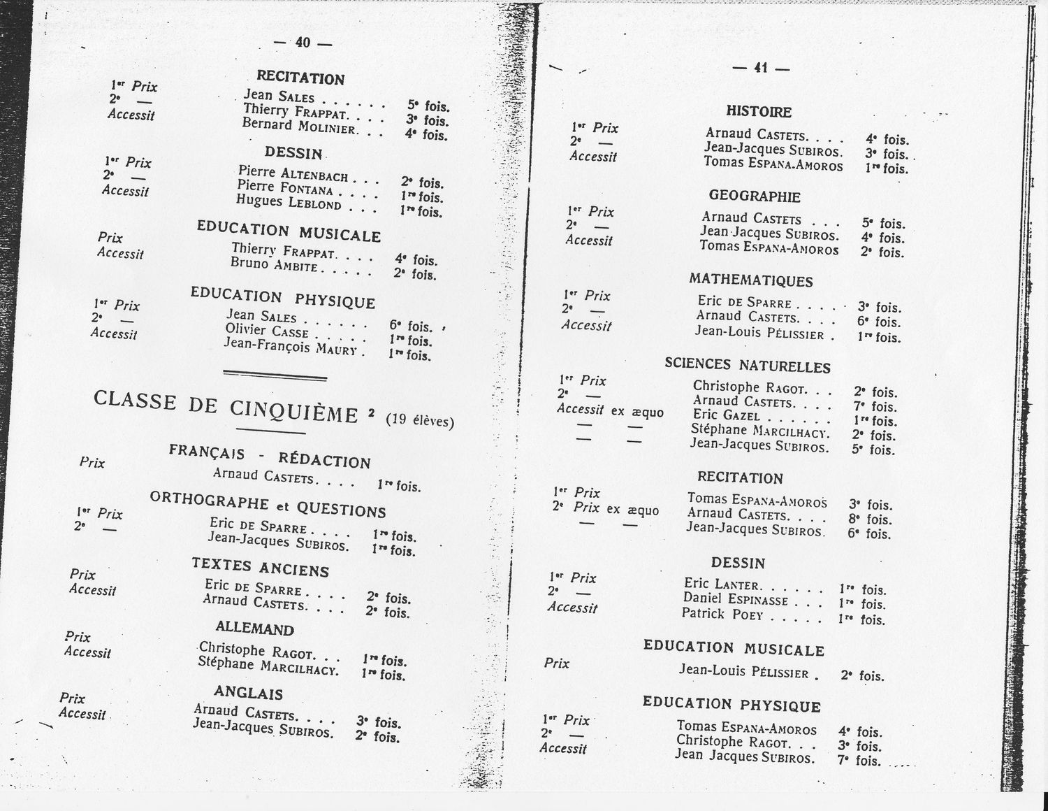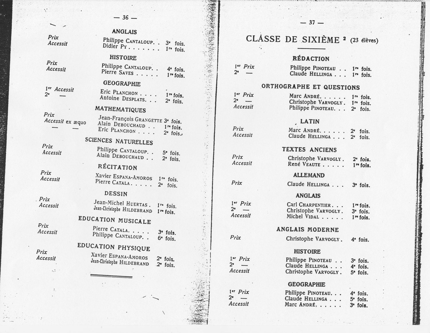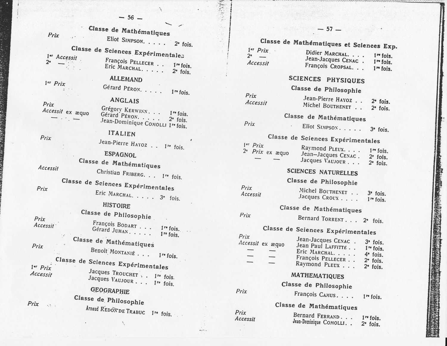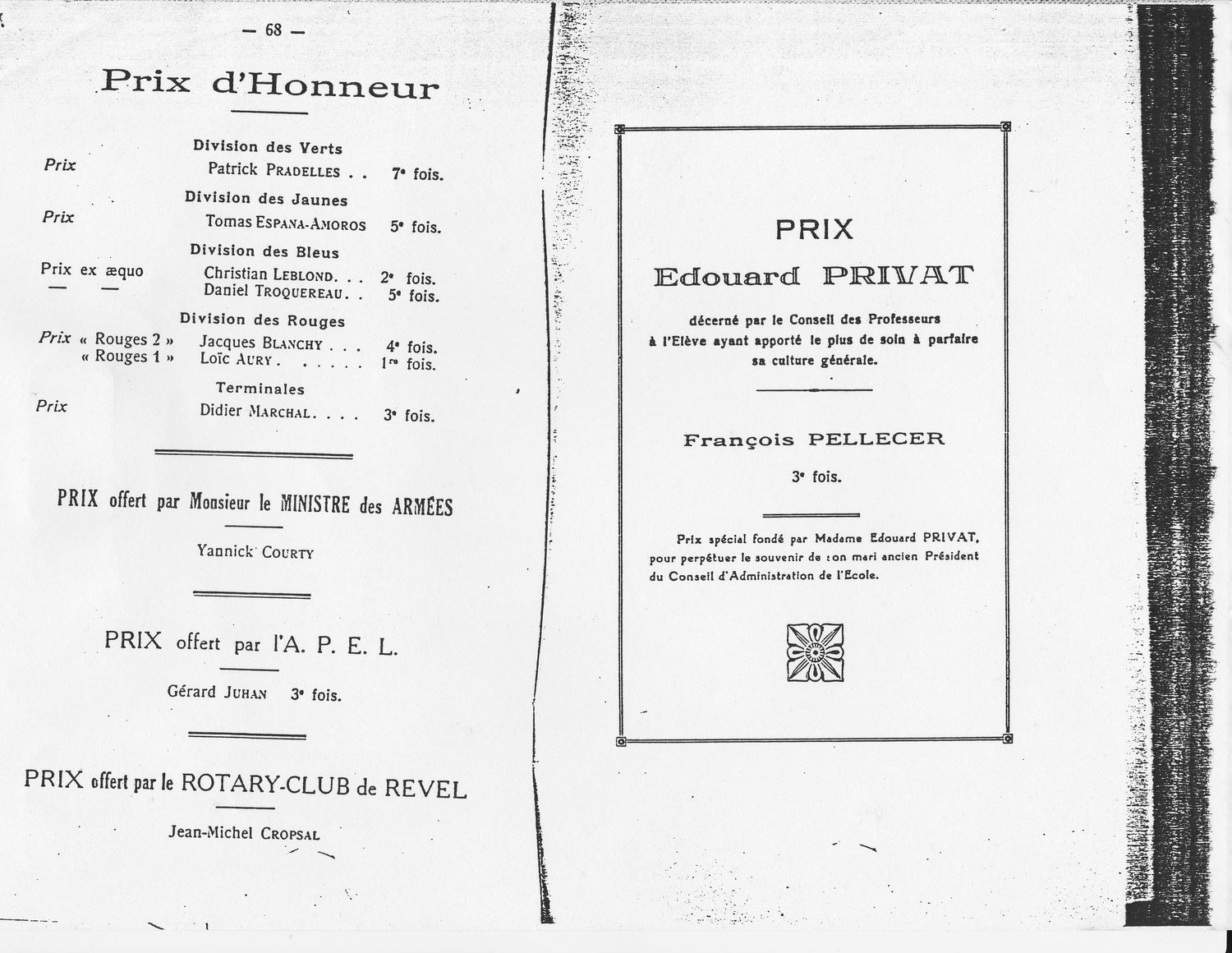 Le Palmarès 1966-1967