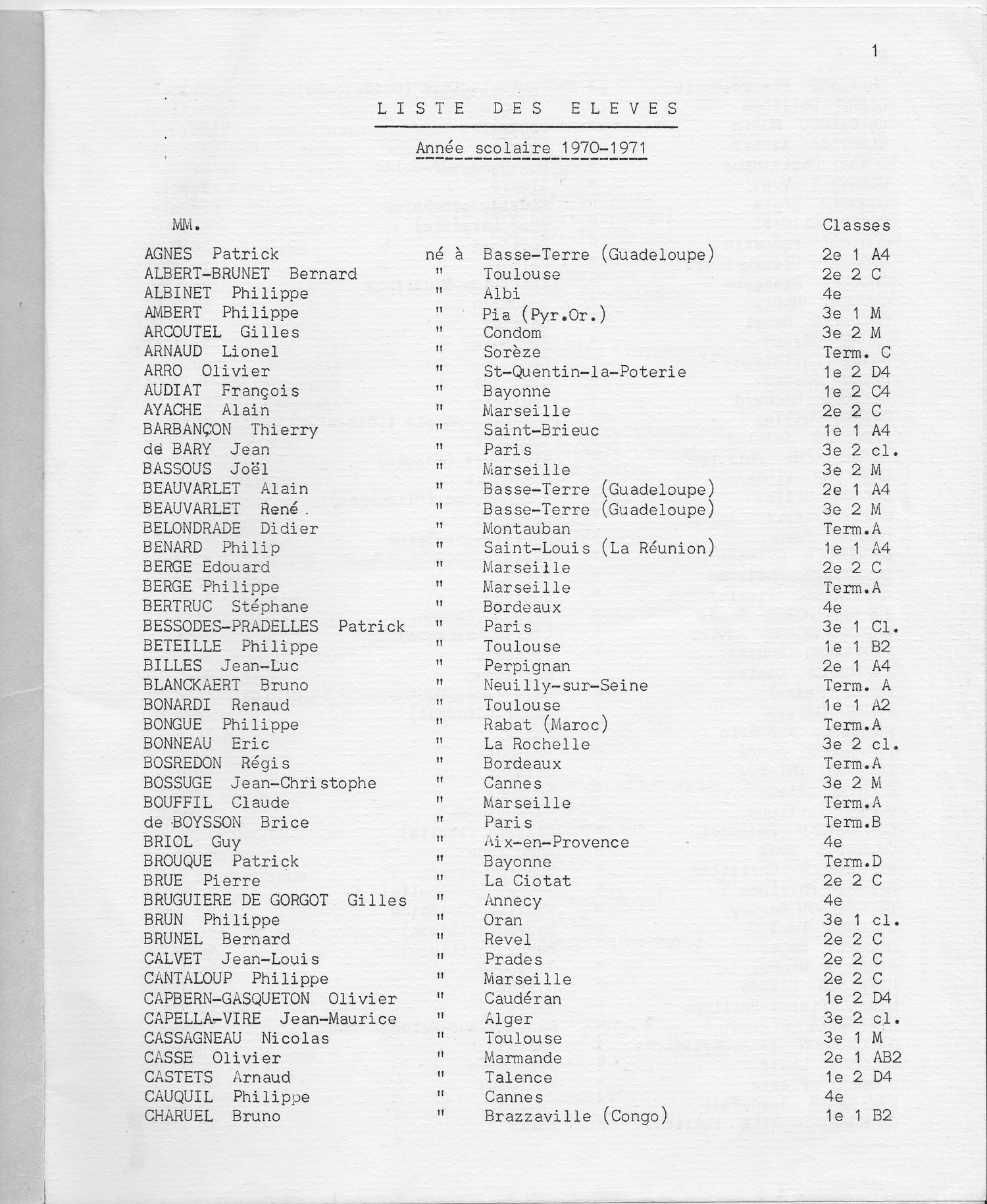 Le Palmarès 1970-1971