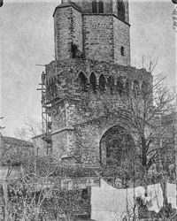 | 1906, Cuillé à droite, sous son inscription sur le pilier central de la cour des Rouges