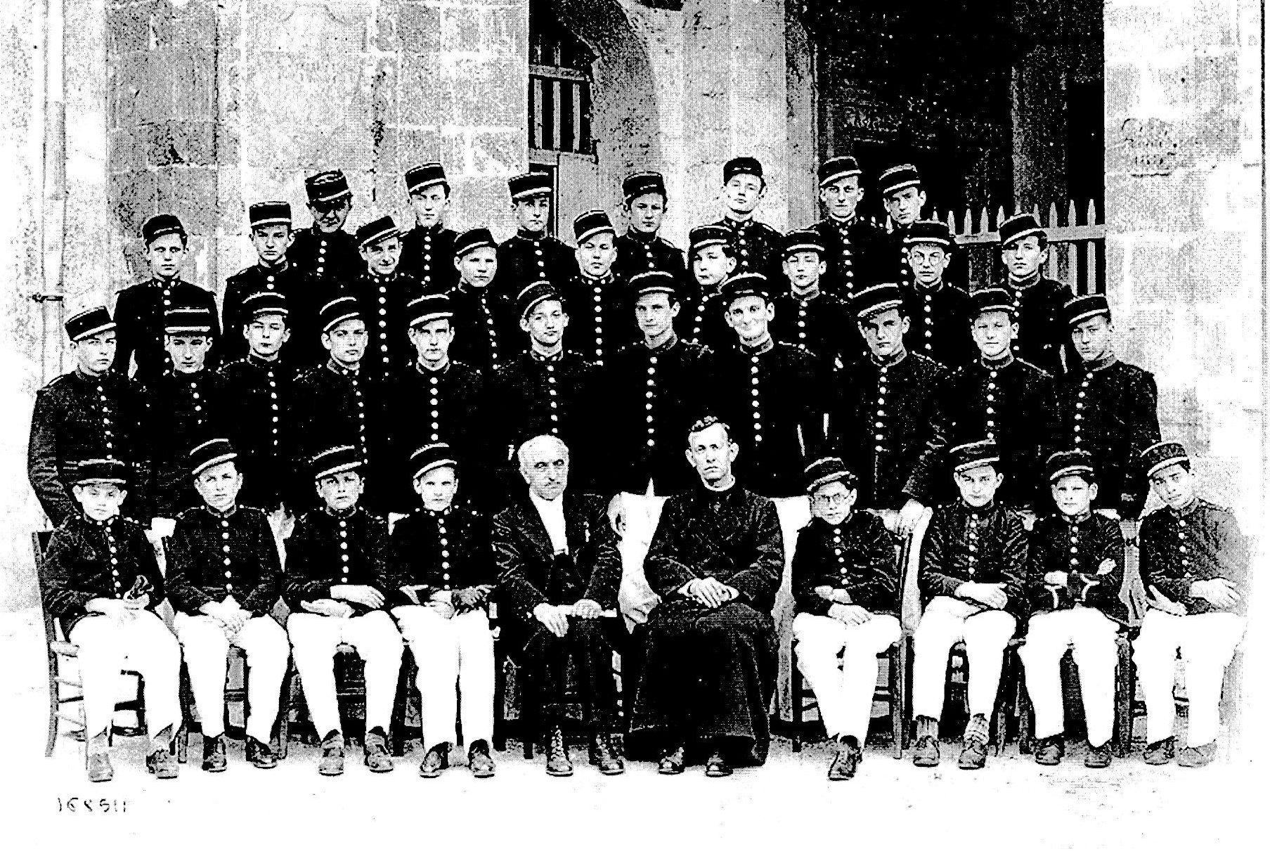 Pierre Courtès, sergent-major, | le Père Audouard, Pierre Terry, Porte-drapeau, Pierre Chaumeil, Maître des cérémonies ![]() les dignitaires | Pierre Courtès, sergent-major, Le corps professoral |