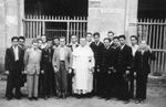 | 1er rang à partir de la gauche : Le Père CAZES (2ème) Le père AUDOUARD (5ème) Monsieur CAMMAS économe (8ème) 2ème rang à partir de la gauche : Monsieur FRAISSÉ prof de maths (6ème) Monsieur AUSSAGUEL économe (8ème) 3ème rang à partir de la gauche : Monsieur BARRIERE (2ème), Monsieur DAUNIS prof de français (5ème), Monsieur LESTARPE sous-censeur et concierge (6ème). ![]() Une autre du corps professoral | La remise du drapeau | Pierre Terry et le père Audouard | Philo-Maths | 1ère | 1ère avec les noms | 2onde | debout