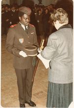 ![]() ... remet les insignes de sergent-major à Yves Ajavob