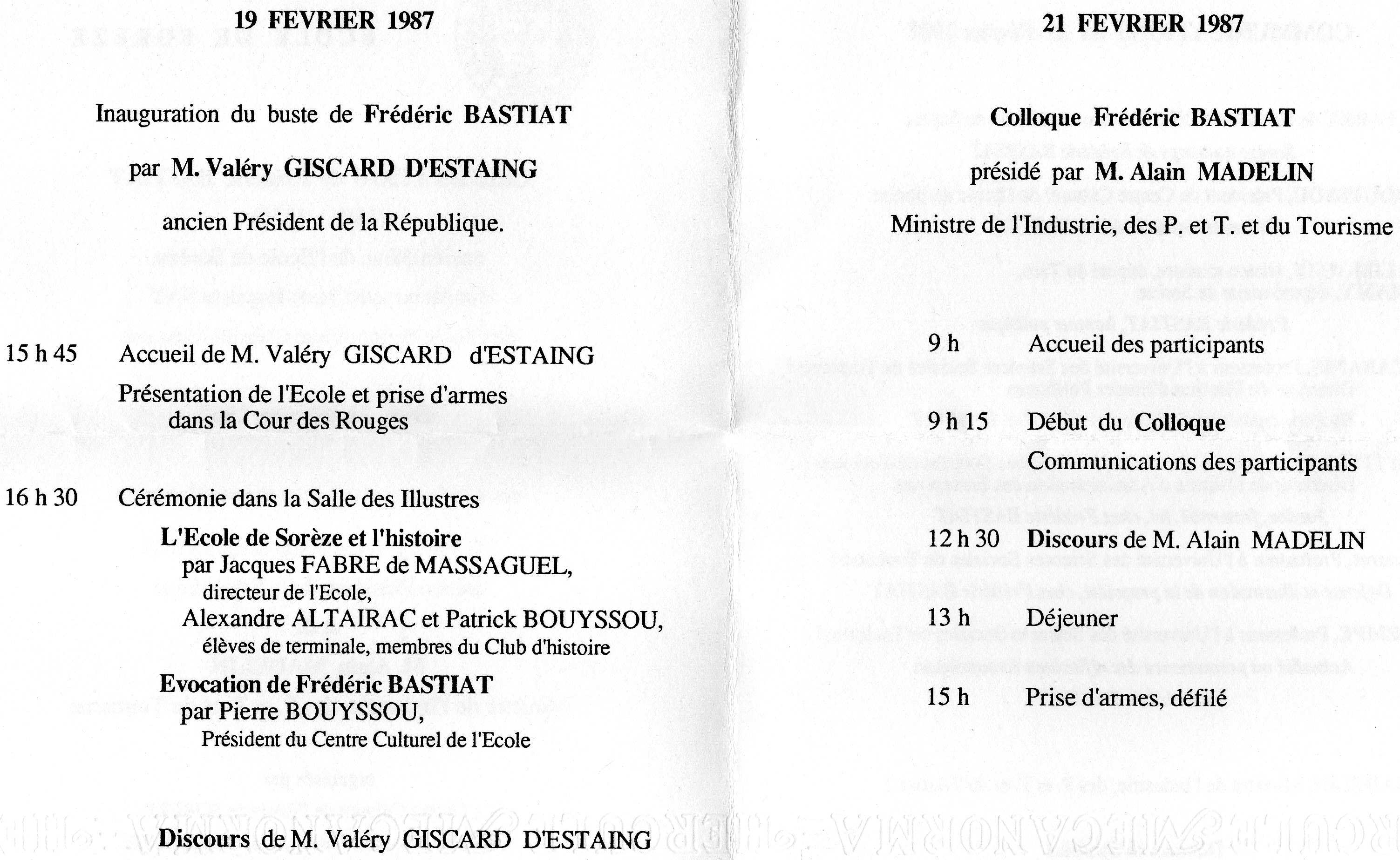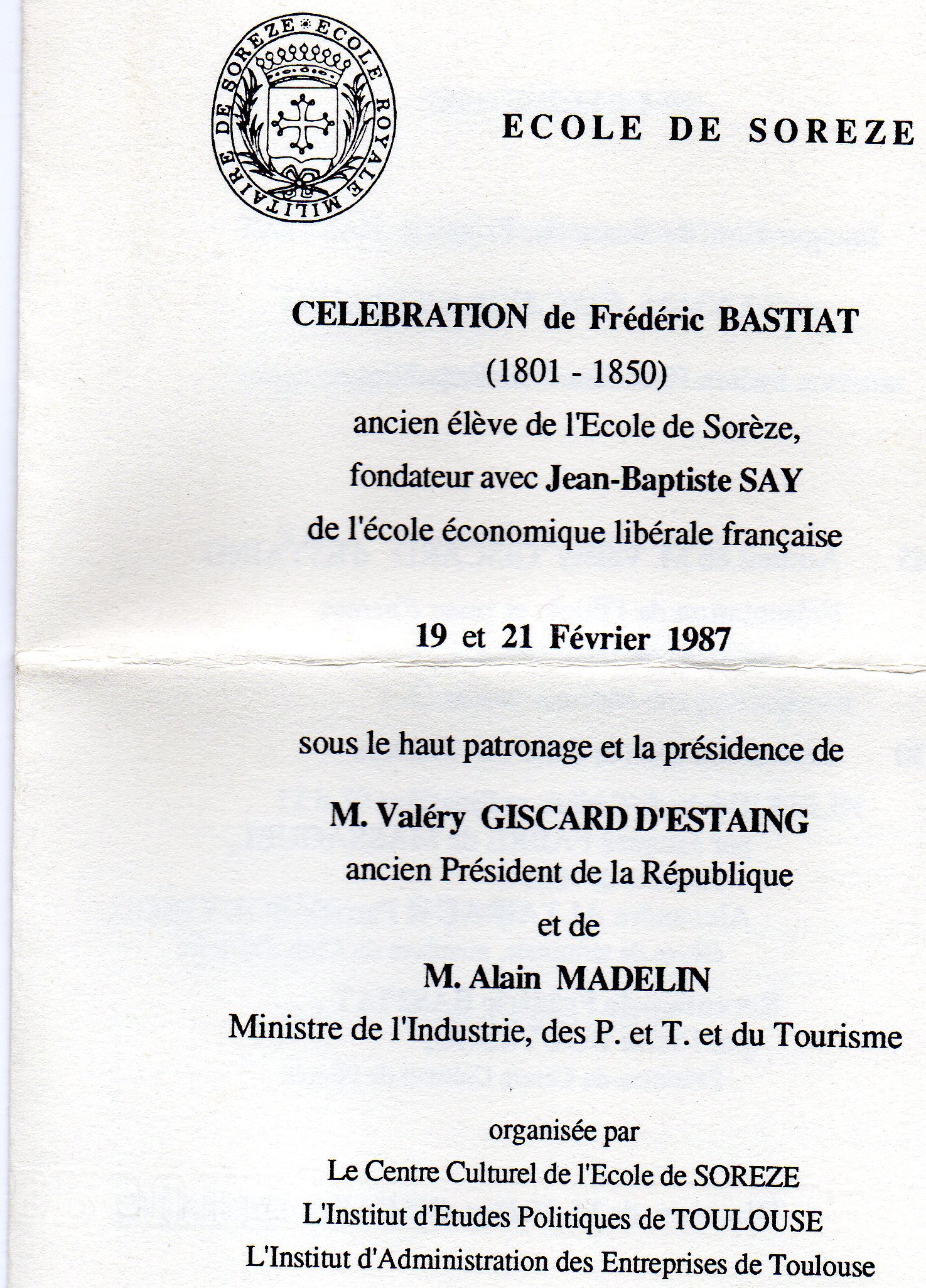 ![]() | Giscard le 19 février, puis Madelin le 21 février pour la commémoration de Frédéric Bastiat ![]()