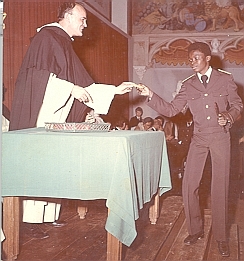 ![]() | Diomandé Mamadou en train de recevoir ses insignes de sergent de la division des jaunes en 1974 du Père Montserret