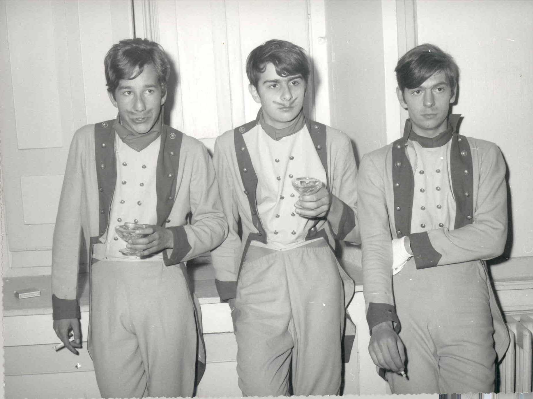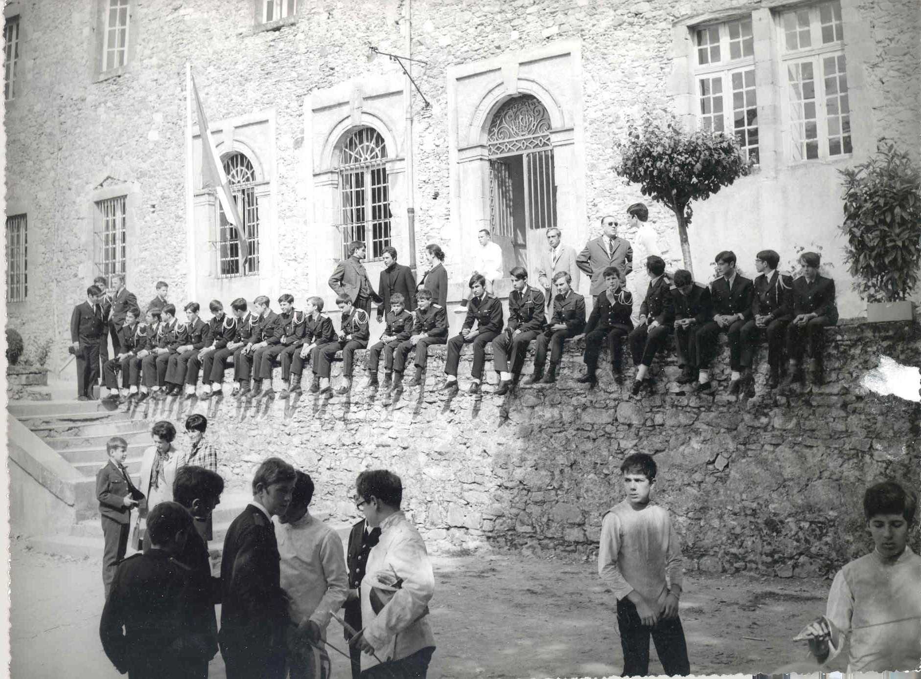 Derrière Leblond, Mr Zwahlen. En décalé à gauche, le prof de musique, et Bruno Charuel.