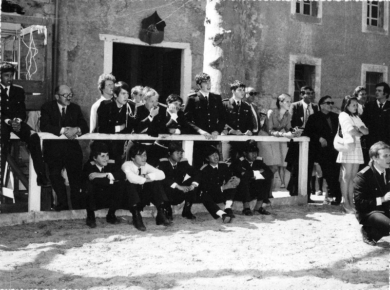 | 1973 :?, Olivier Matet, Jean Cornus, Sommay Soukrisak, François-Michel Mauran, Patrick Bessodes-Pradelles, ?, Jean-Arnaud Drevet (masqué par la jambe), ? et au fond Jacques Imbert. La fille au t-shirt vert est une élève de Maître Bésanger.