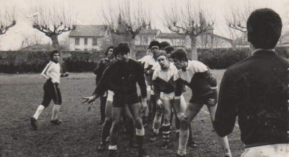 | ![]() 1971 Grand-parc, rugby ligne avant, SALES Jean-Edmond, MOLINIER Guy, Pierre-Louis CROUZAT