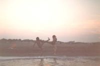 | ![]() 1973 août, Valras-Plage, SHOTOKAN sur la plage Sommay SOUKRISAK Jean-Marc PEZET qui lui en avait mis plein la tête !!!.