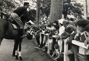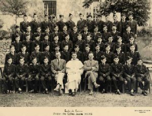 | ![]() Pentecôte 1961, | tous les membres de l'état-major sont des cavaliers. On reconnait Jean-François Bellon dans la 2ème rangée et Jacques Schneider sur la 3ème ![]() Louis Roy, Jean Laurent, Alain Meunier, Maître René Roques, et Gaston Bergasse derrière Roy
