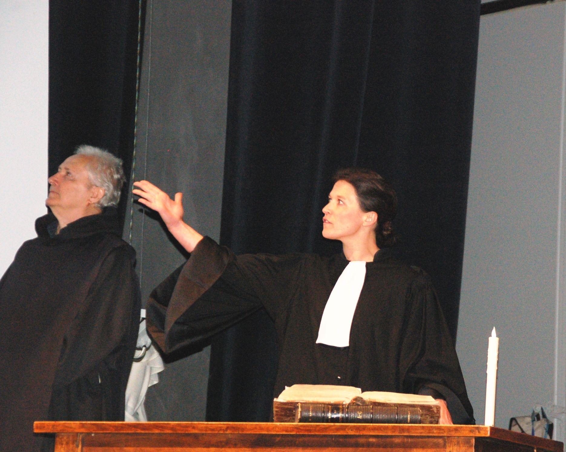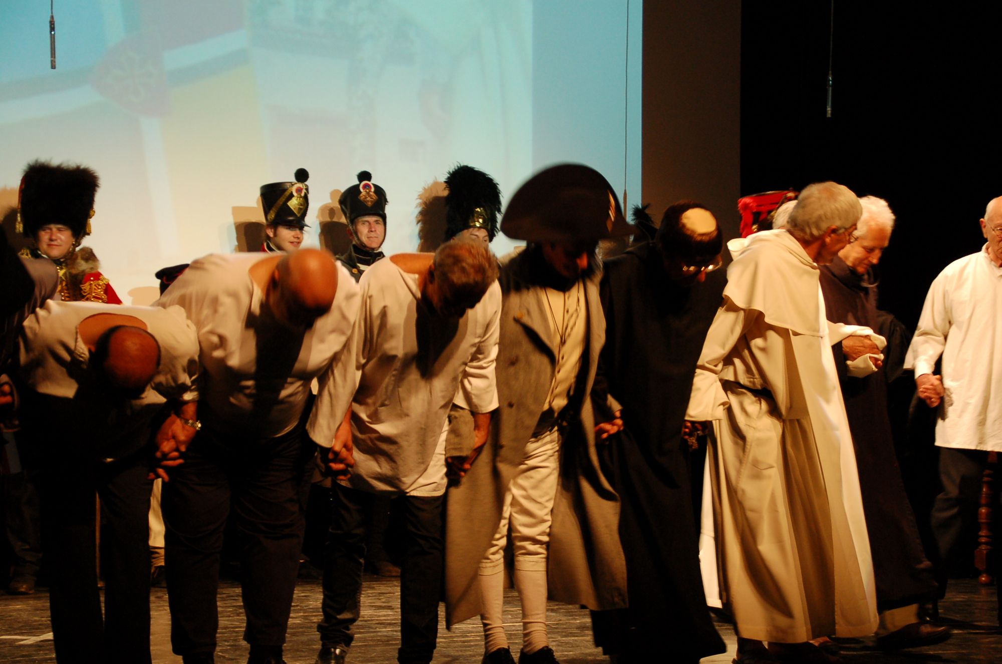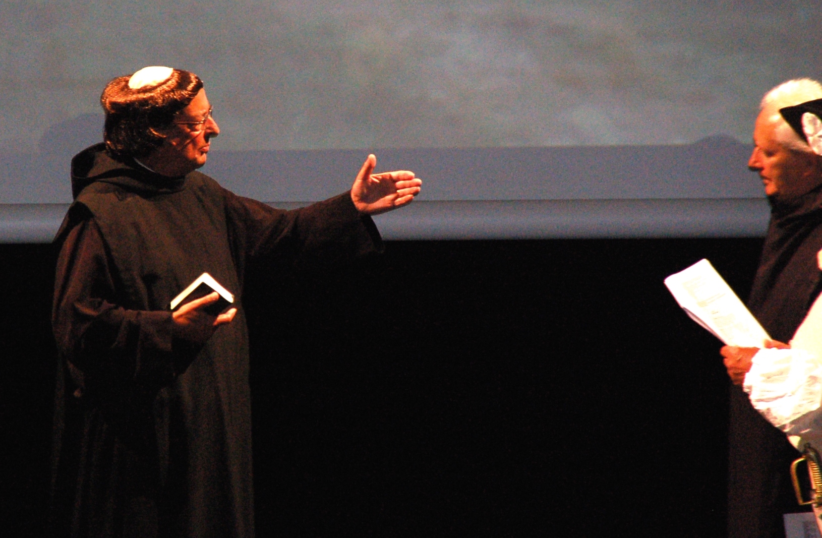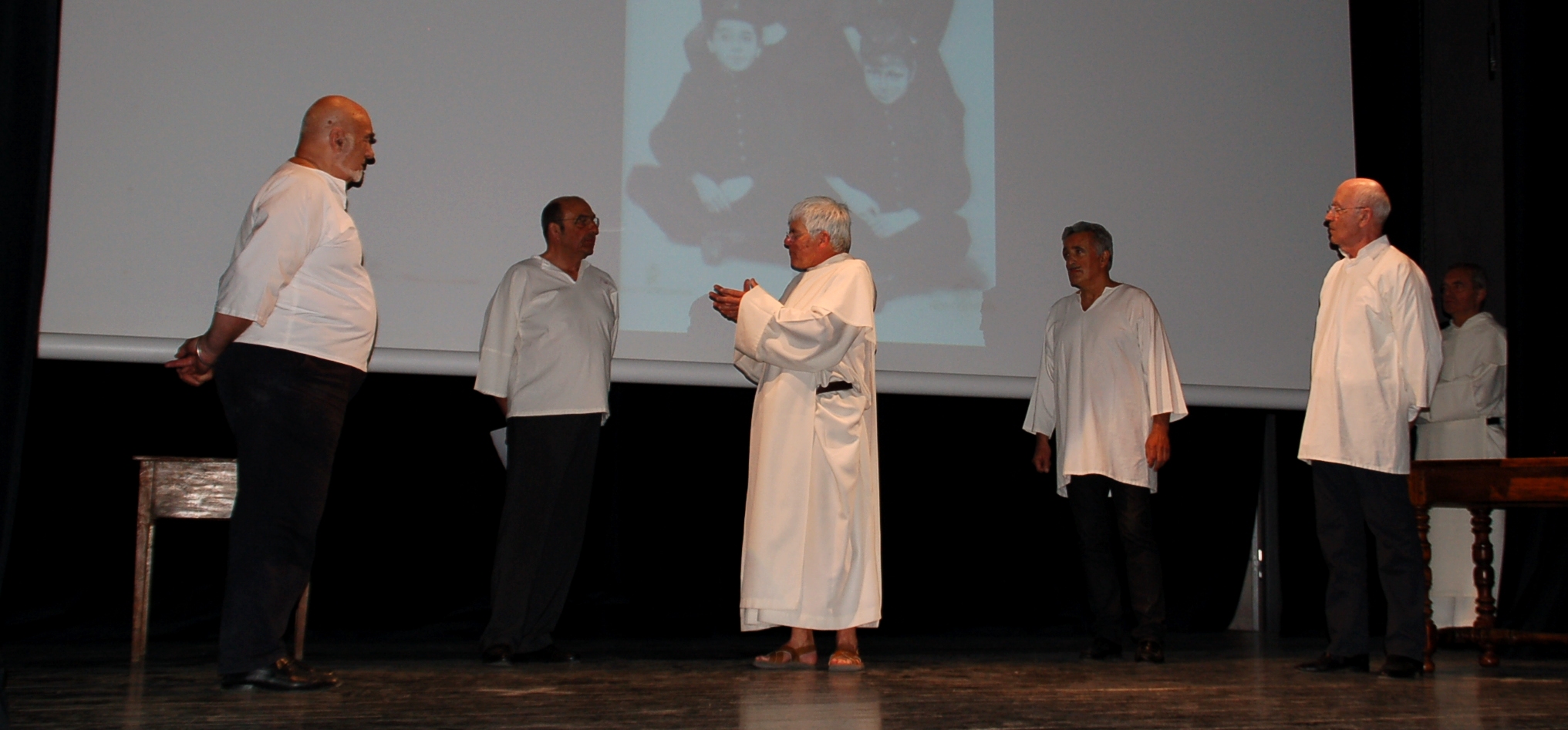 | Christian Mathon en Dom Bernard (rôle qu'il jouait en 1954) et Jacques Taboni