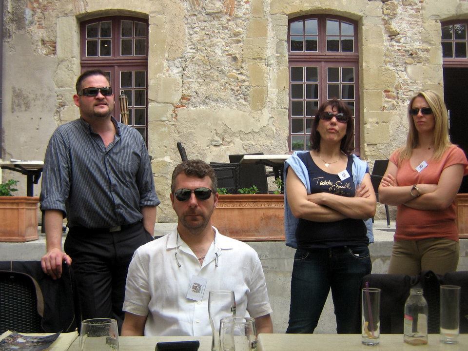 | Myriam Moretti et François Cruypeninck, dans le fond on aperçoit Oumar Ouattara, Isabelle Zadra, Françoise Bedès, Patrick Gaire, Thierry Lackner et Olivier Campardou